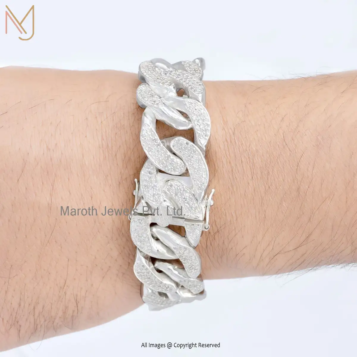 925 Sterling Silver Natural Silver Cubic Zircon Curb Man's Chain Bracelet Jewelry USA