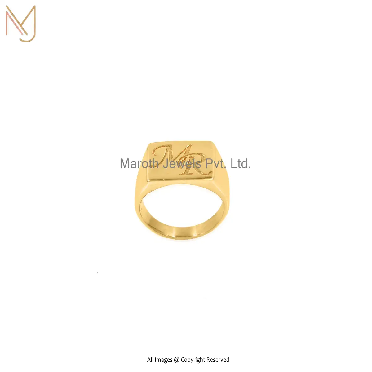 925 Sterling Silver Natural Silver MR Monogram Engraving Square Signet Ring Jewelry Supplier