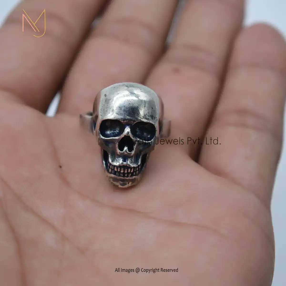 925 Sterling Silver Oxidized Plated Skull Design Ring Jewelry Manufacturer