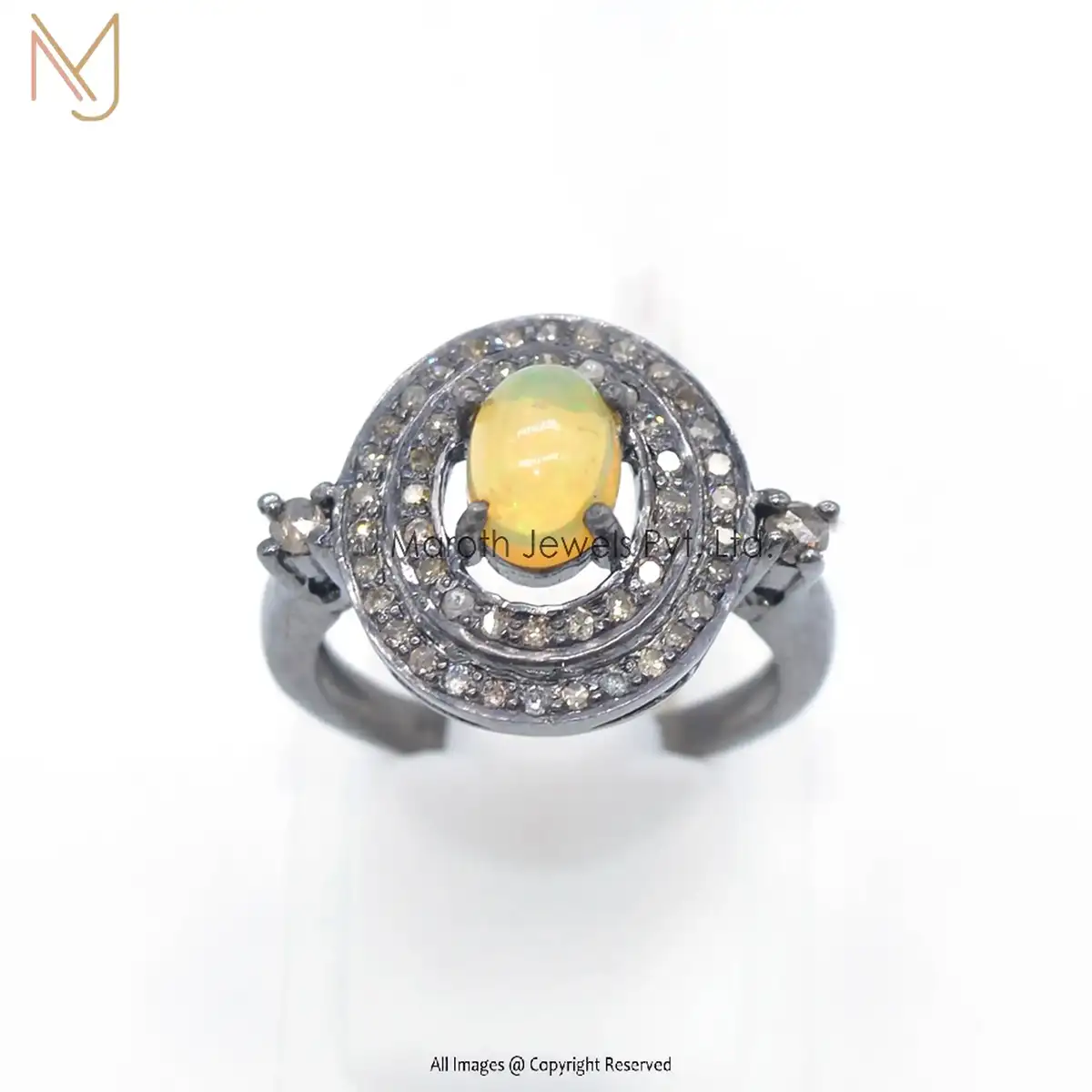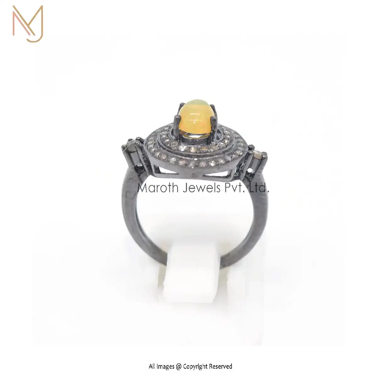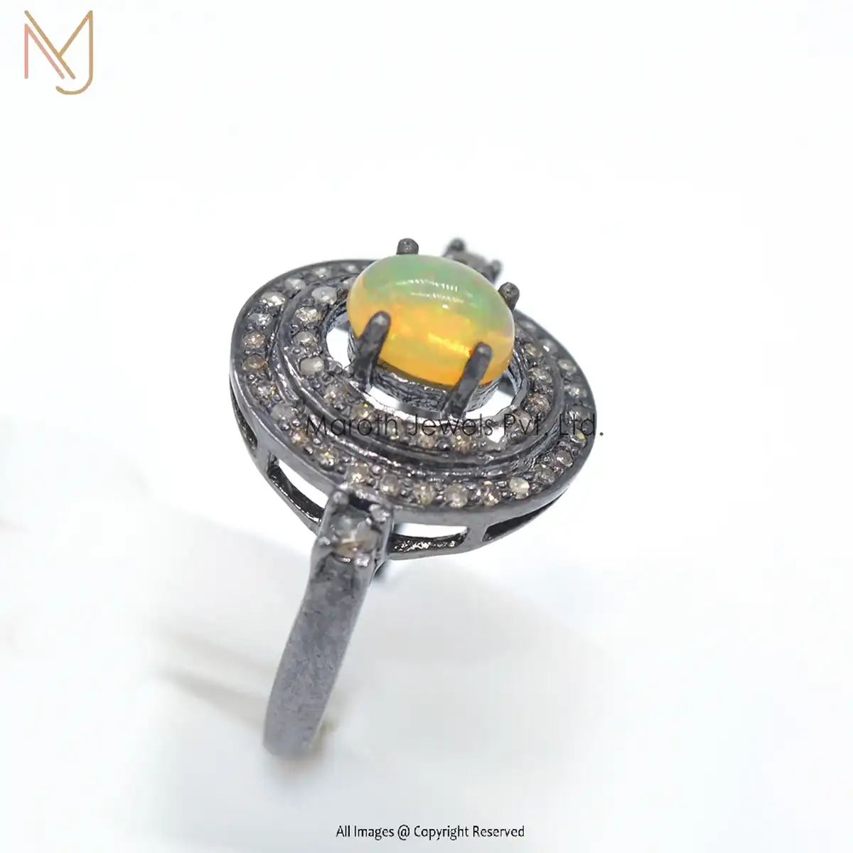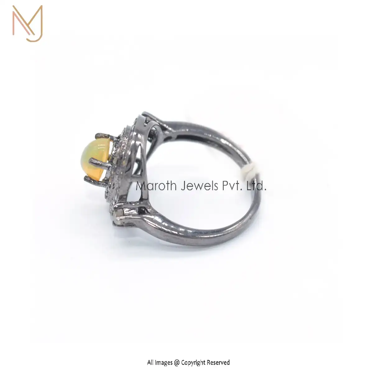 925 Sterling Silver Pave Diamond Opal Gemstone Ring Wedding Jewelry Manufacturer