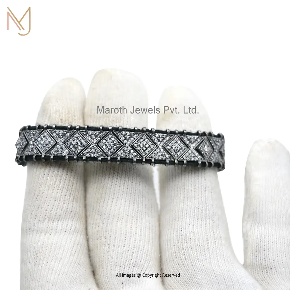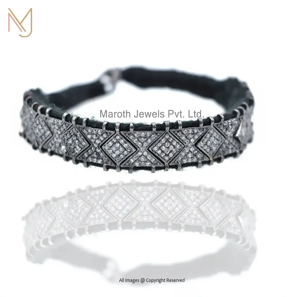 925 Sterling Silver Rhodium Plated Diamond Cubic Zircon Macrame Beads Bracelets USA