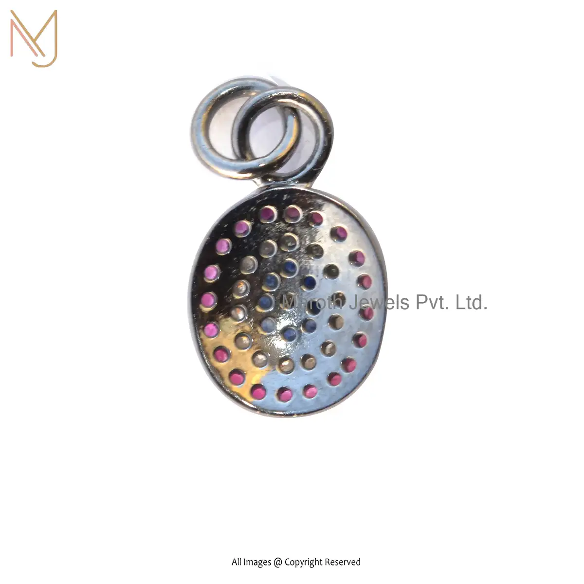 925 Sterling Silver Rhodium Plated Diamond & Pink Sapphire And Blue Sapphire Designer Pendant Custom Jewelry