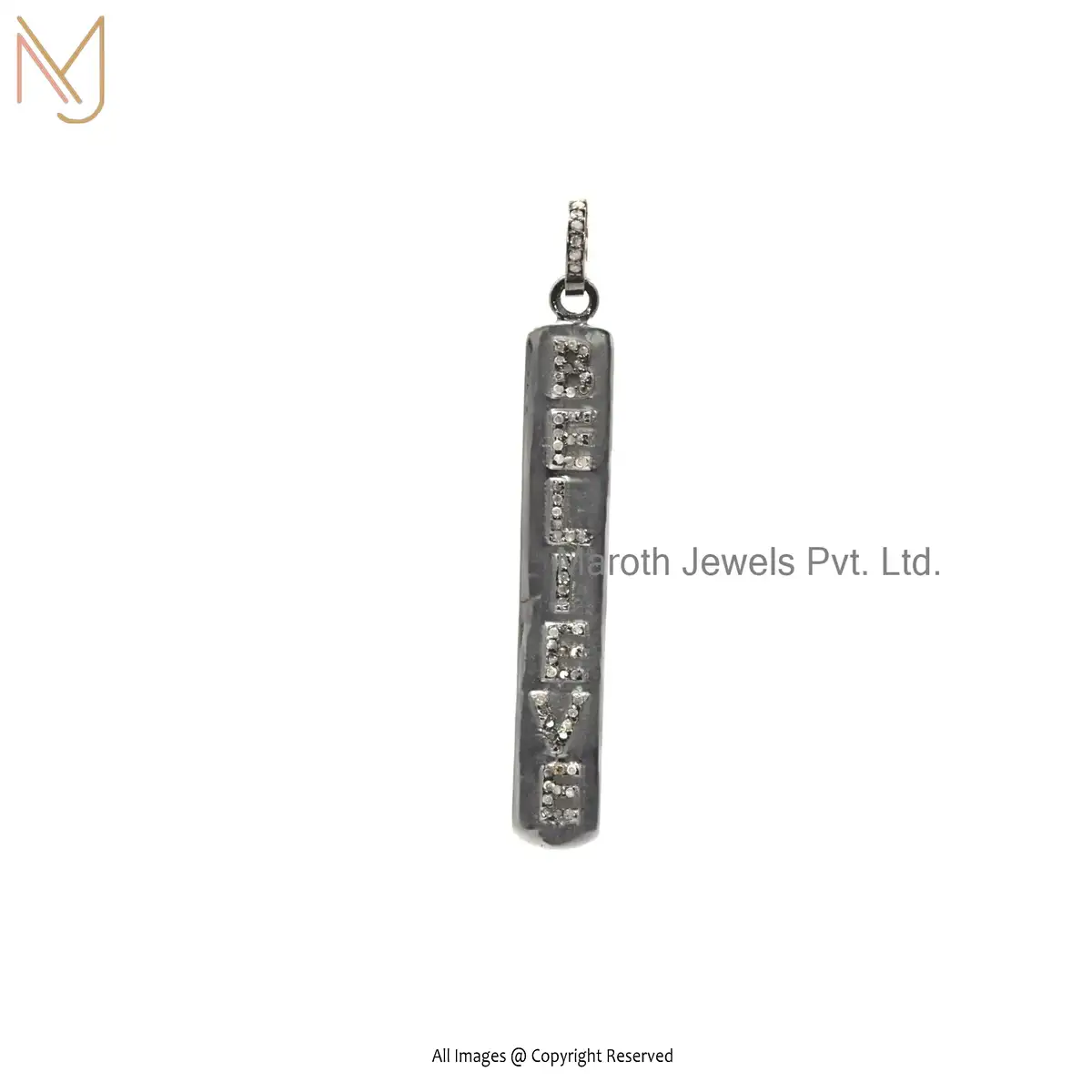 925 Sterling Silver Rhodium Plated Initial Believe Diamond Initials Charms Pendant Jewelry Supplier