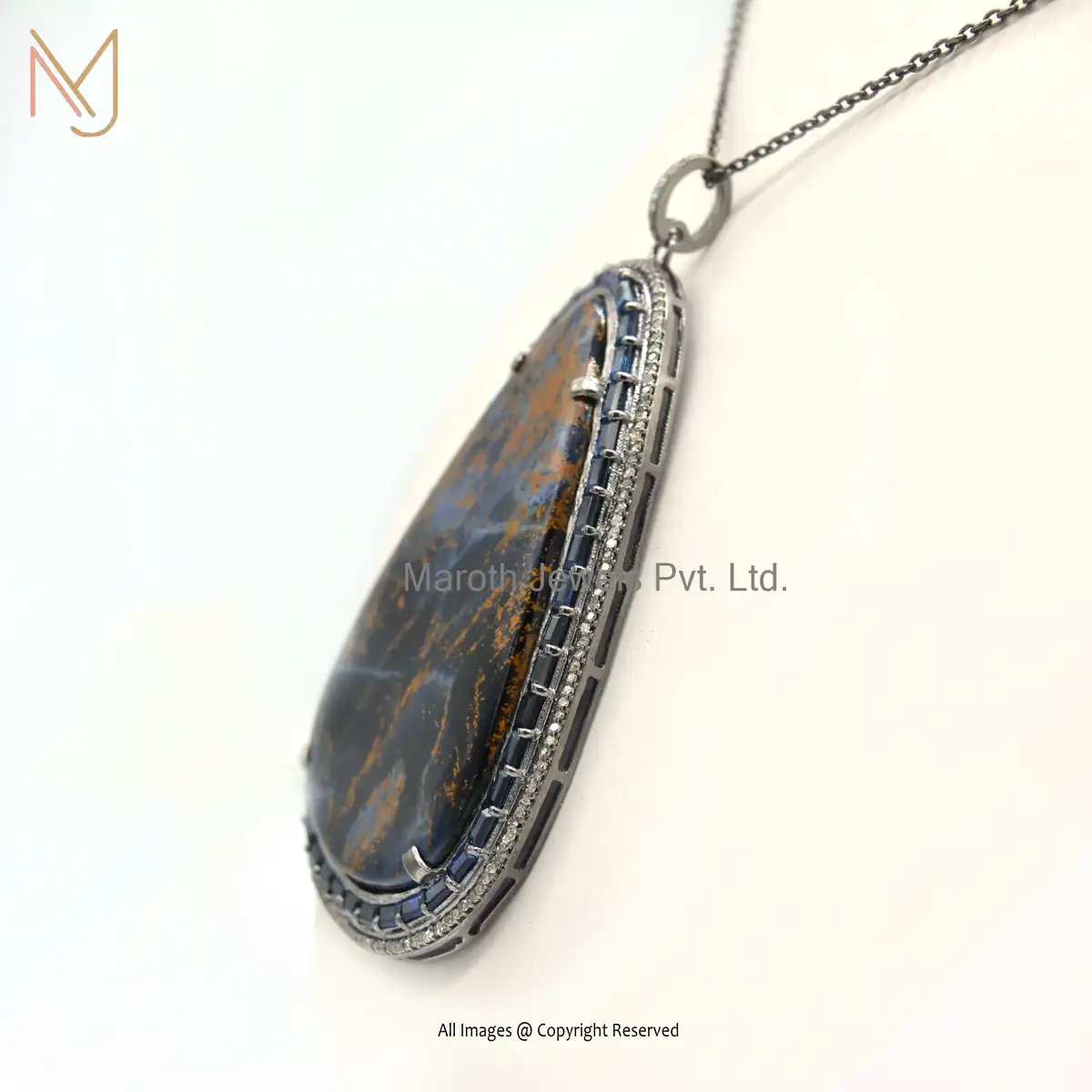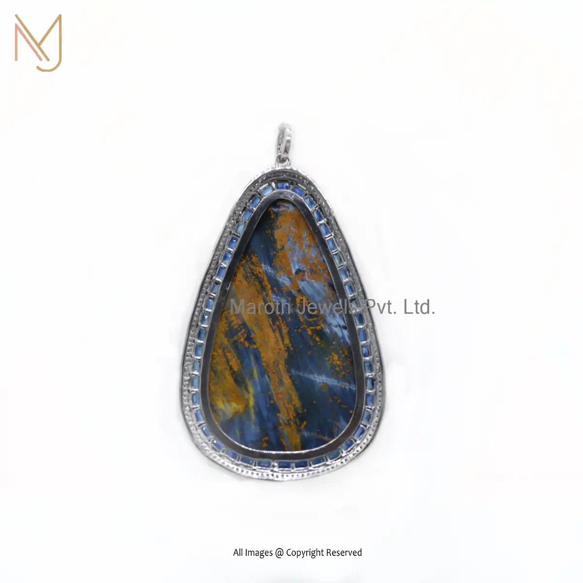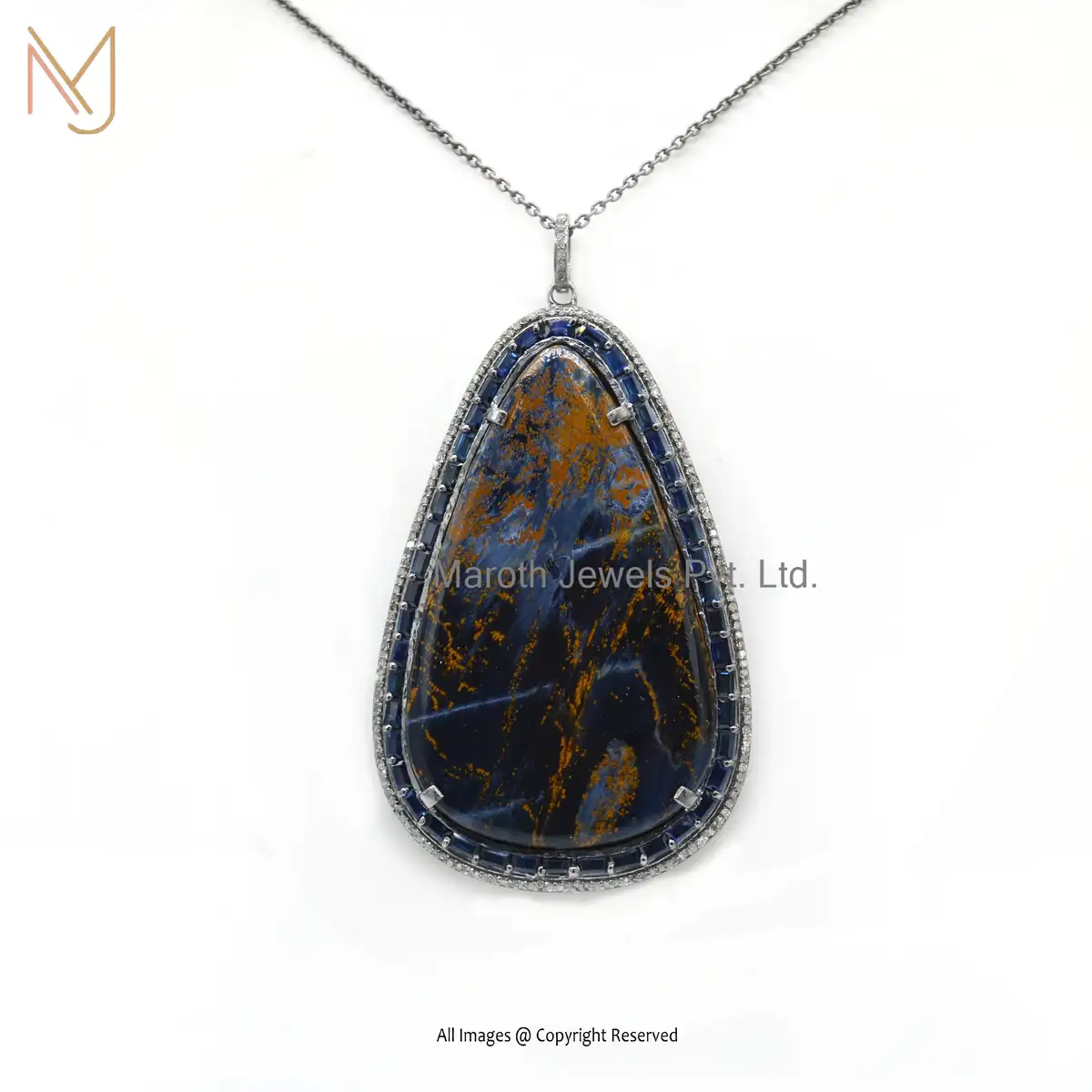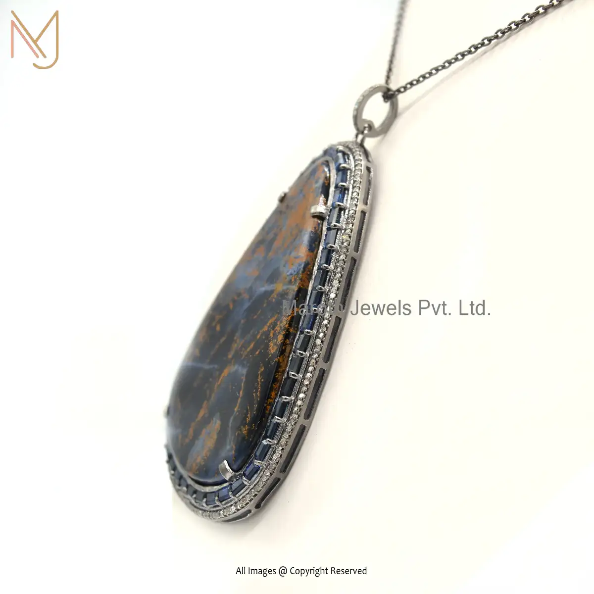 925 Sterling Silver Rhodium Plated Pave Diamond Pietersite Gemstone Pendant Jewelry Supplier