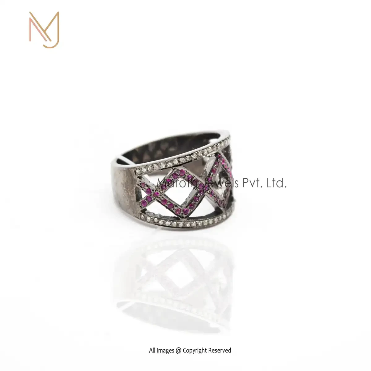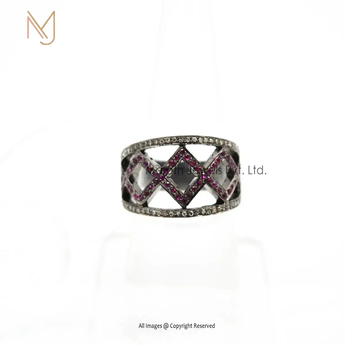 925 Silver Rhodium Plated Pave Diamond Ring Jewelry Manufacturer