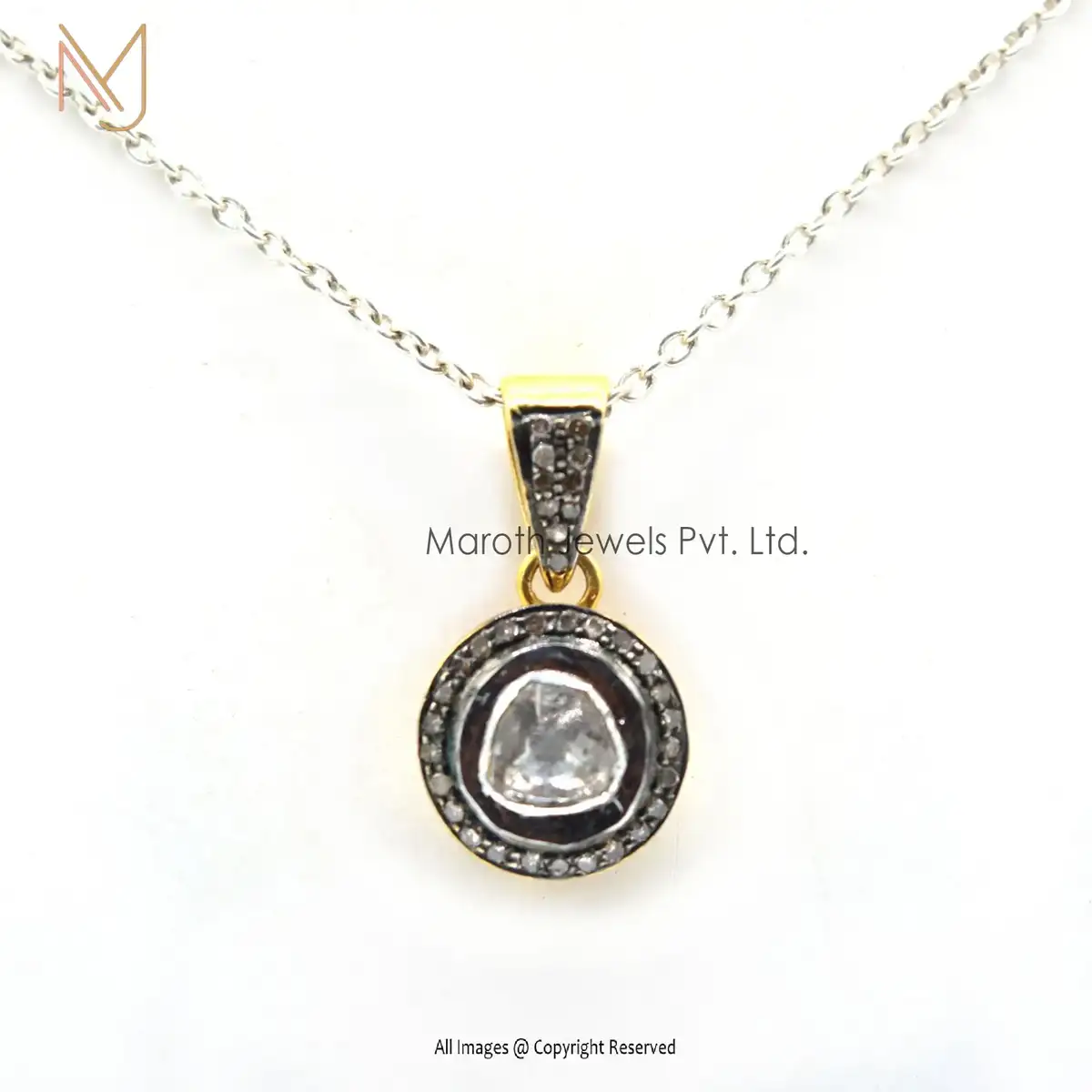 925 Sterling Silver Rhodium Rose Cut Diamond Charms Pendant Handmade Jewelry Manufacturer