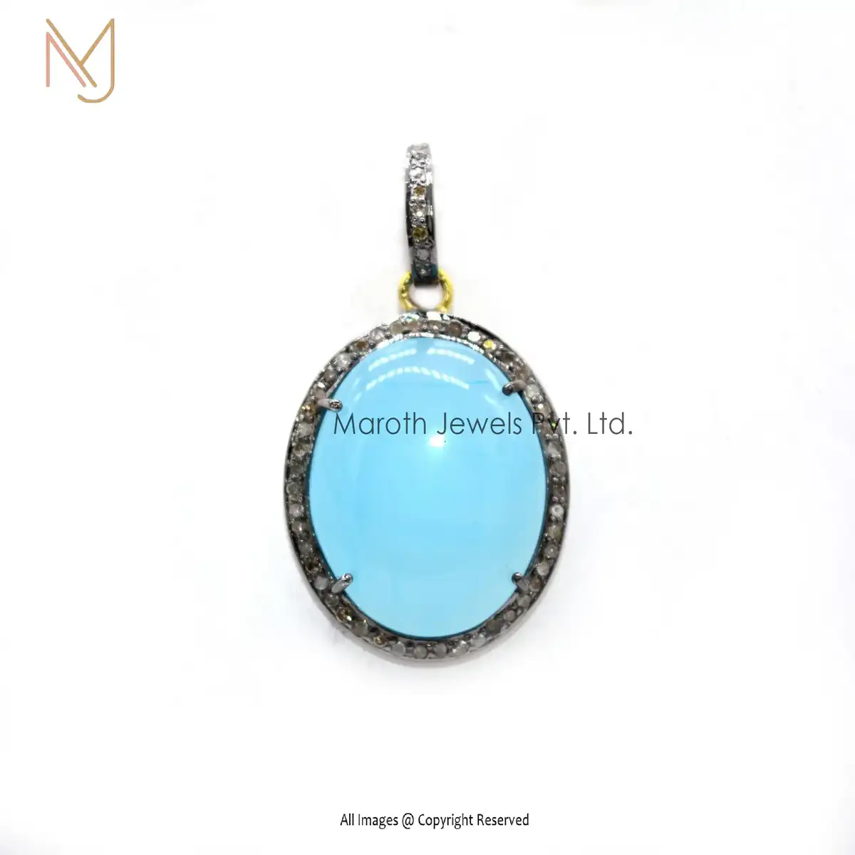 925 Sterling Silver Rhodium Yellow Gold And Turquoise Diamond Pendant Custom Jewelry
