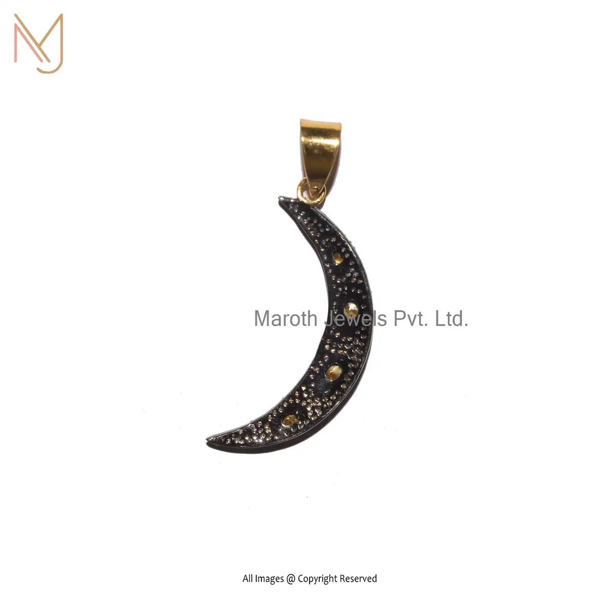 925 Sterling Silver Rhodium Yellow Gold Plated Rose Cut Diamond Half Moon Pendant Jewelry Manufacturer