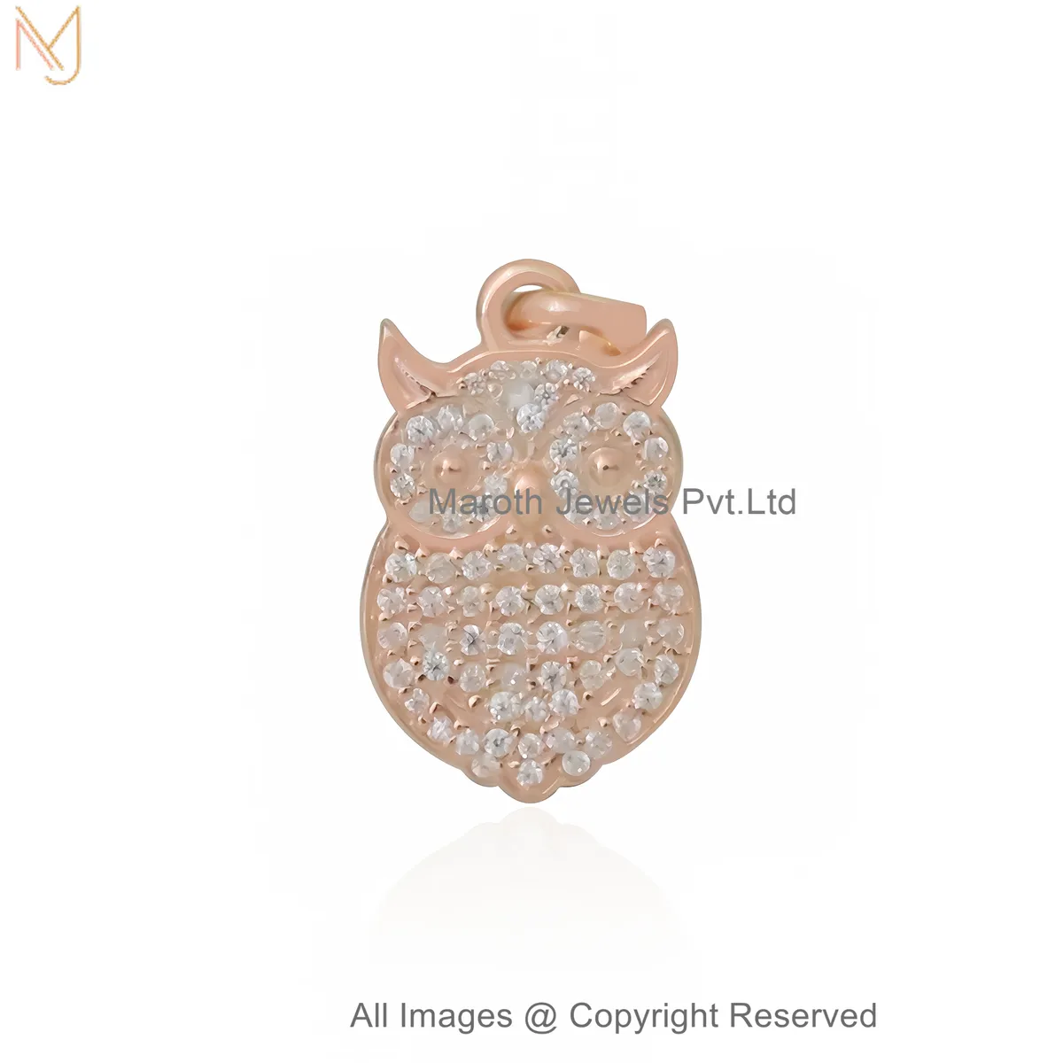 925 Sterling Silver Rose Gold Plated CZ Owl Pendant Charm – Sparkling Animal Jewelry Supplier