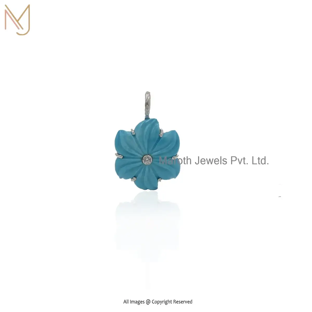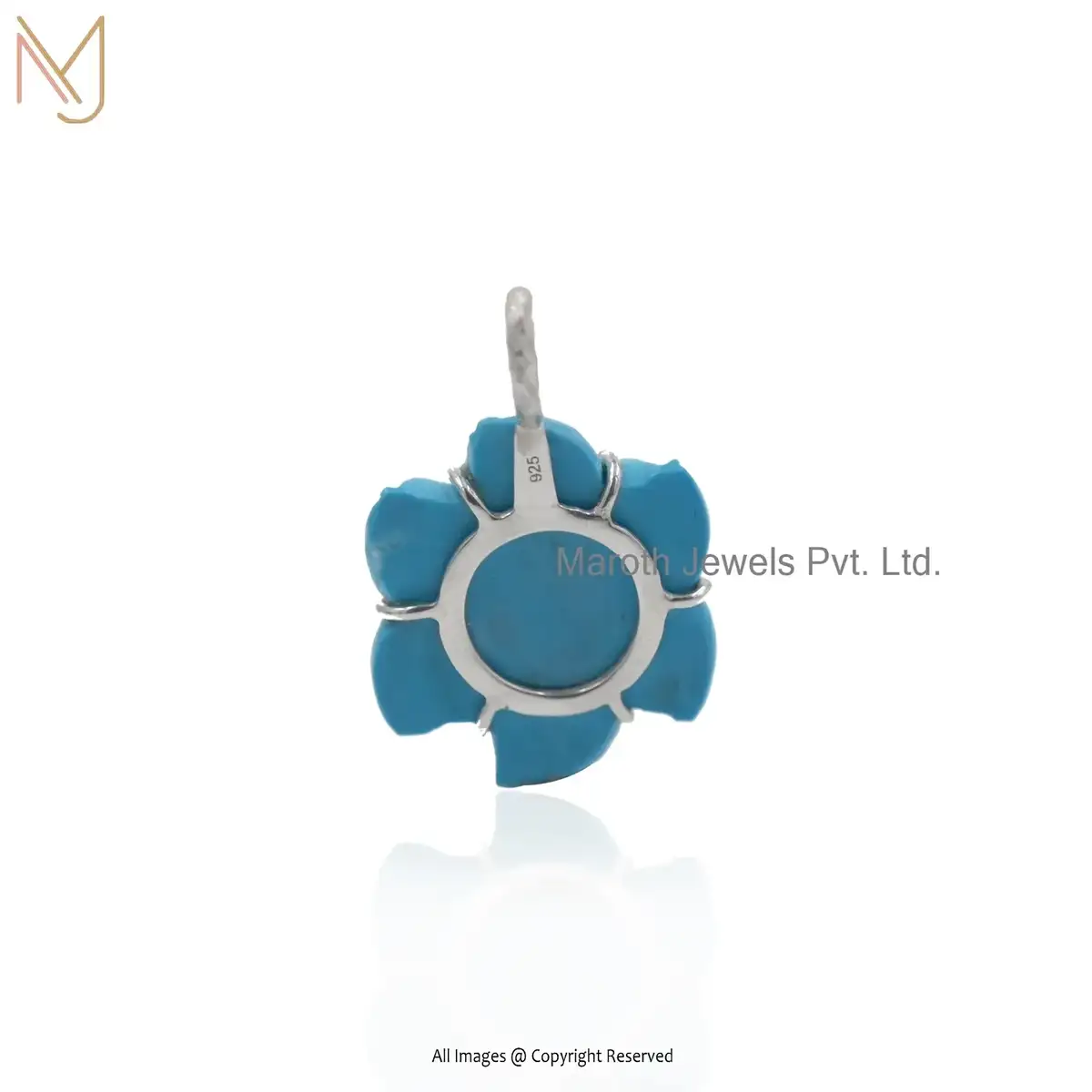 925 Sterling Silver Turquoise And White CZ Flower Pendant Custom Jewelry