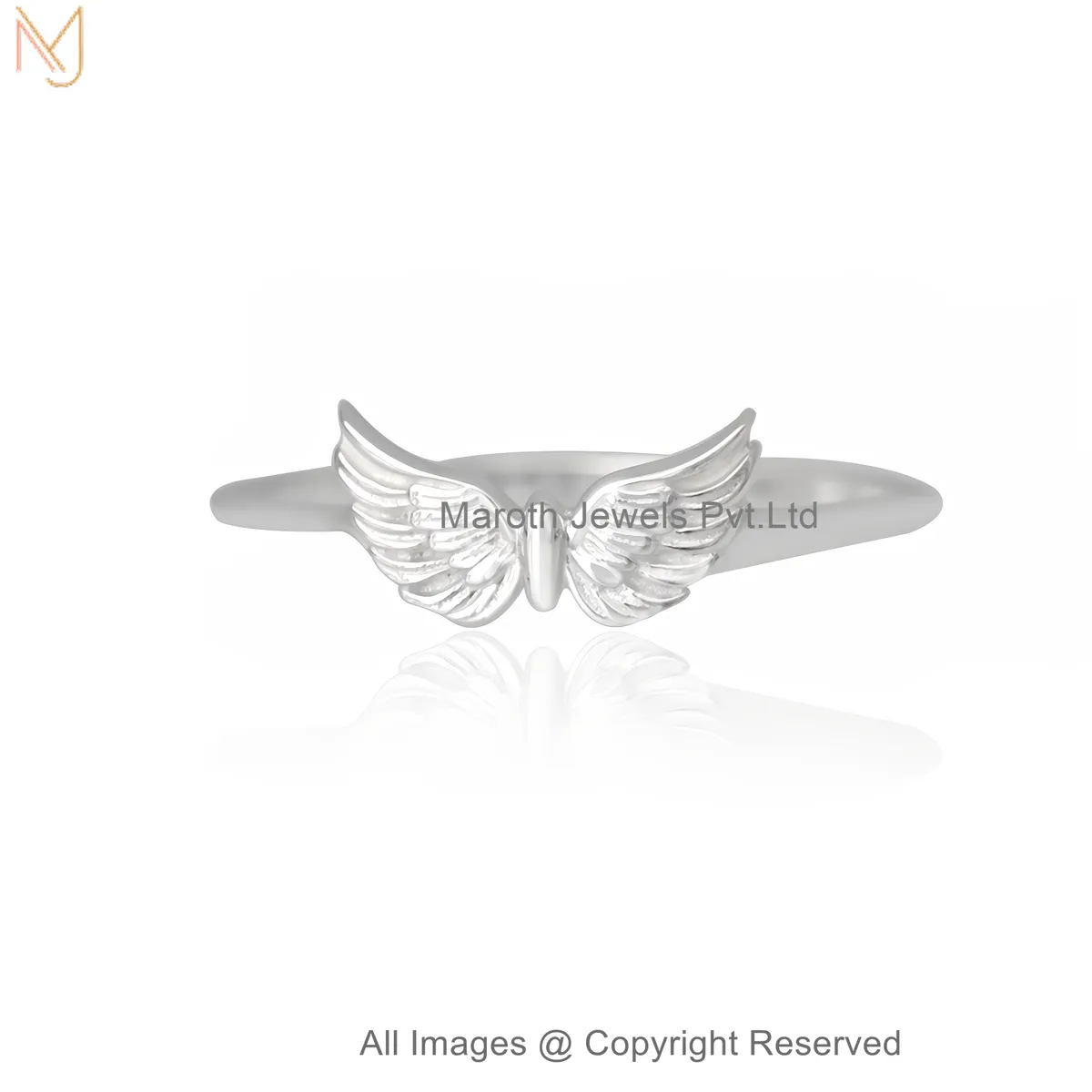 925 Sterling Silver White Gold Plated Angel Wings Ring | Adjustable Minimal Feather Design Jewelry Manufacturer