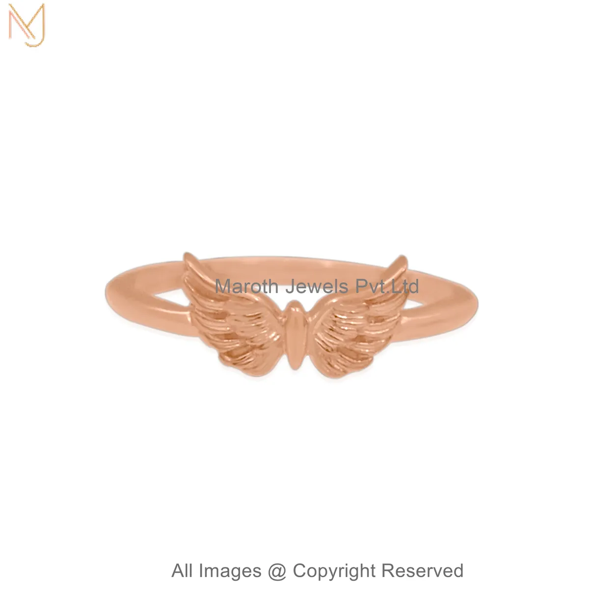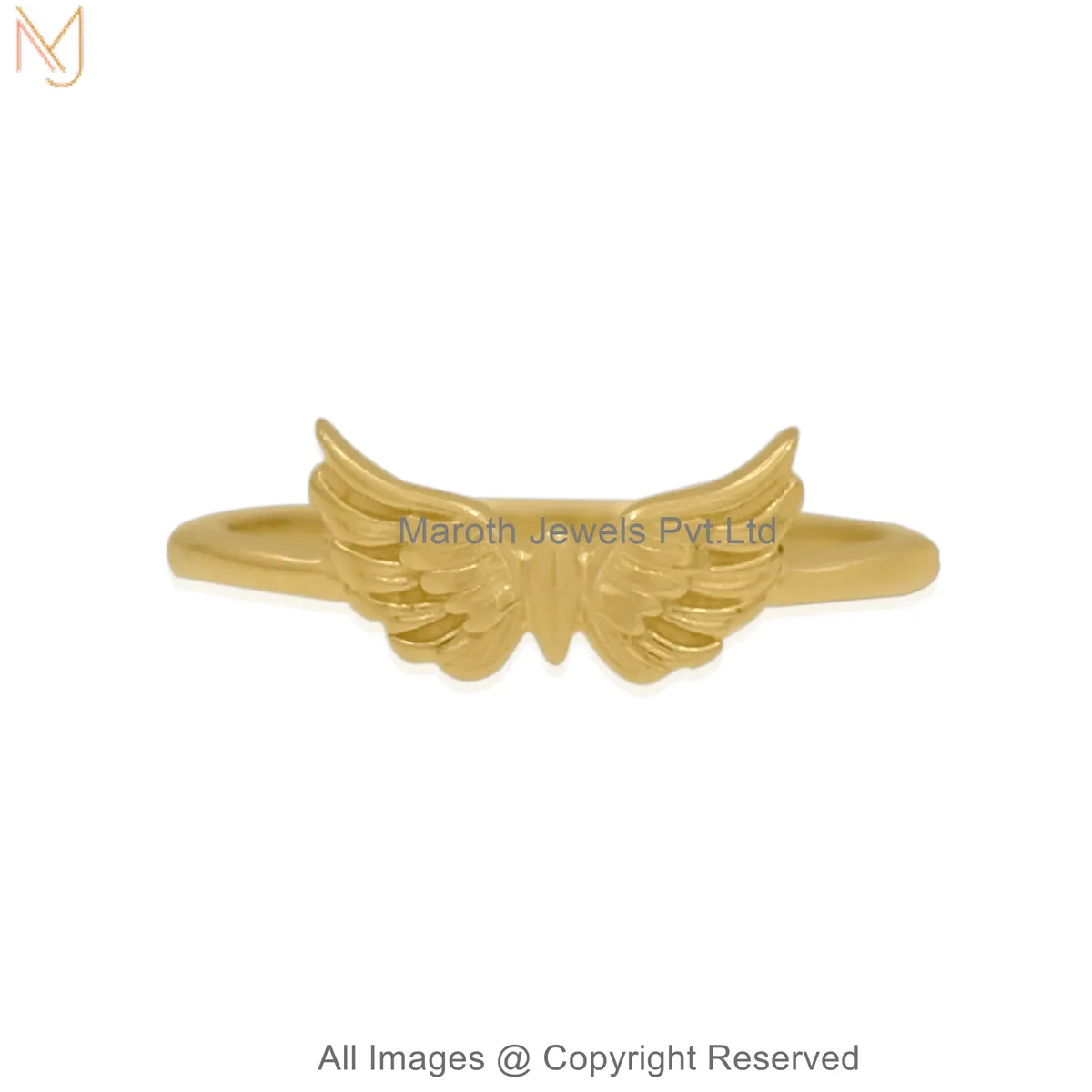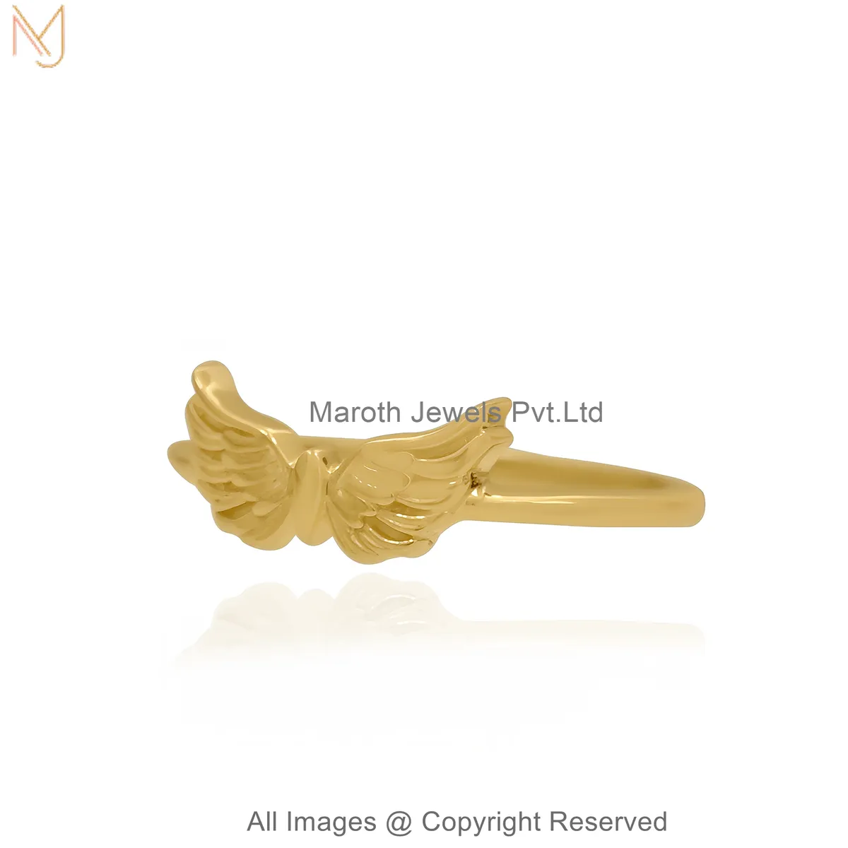 925 Sterling Silver White Gold Plated Gold Angel Wings Ring | Adjustable Minimal Feather Design Jewelry Manufacturer