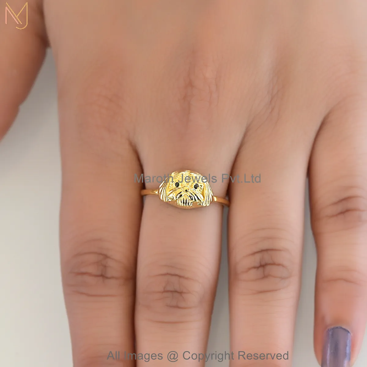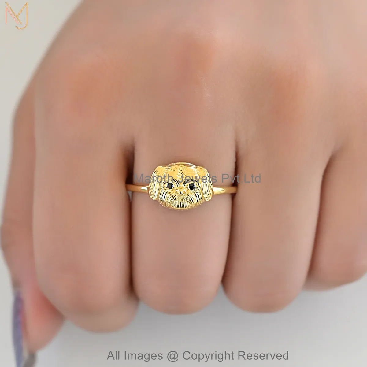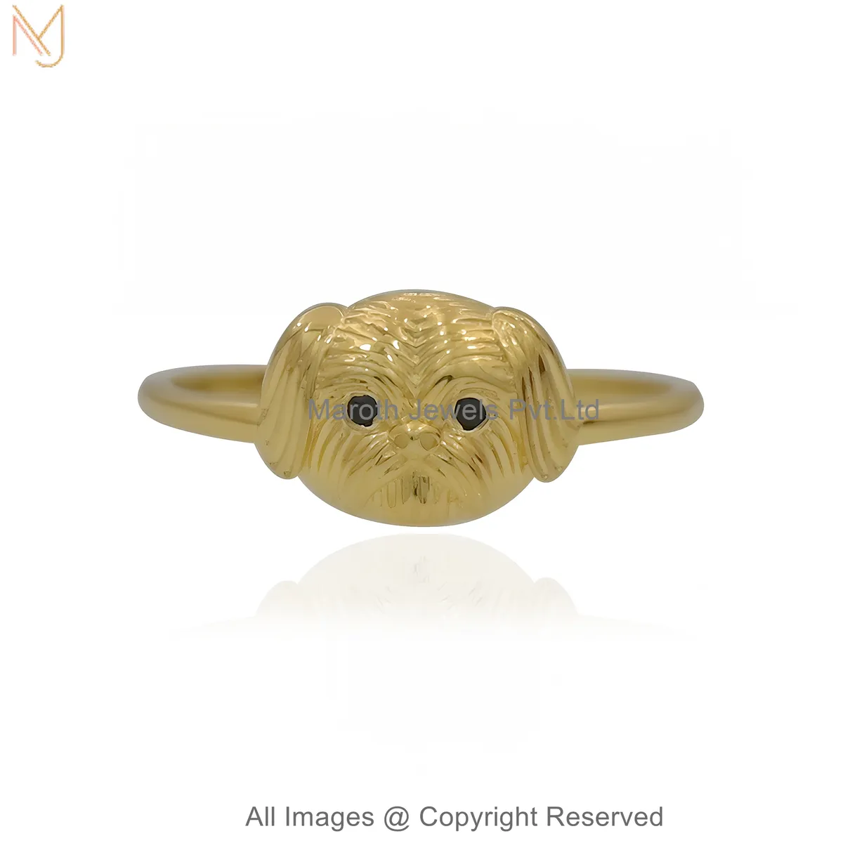 925 Sterling Silver White Gold Plated Black CZ Luxe Shih Tzu Puppy Face Ring Jewelry Supplier