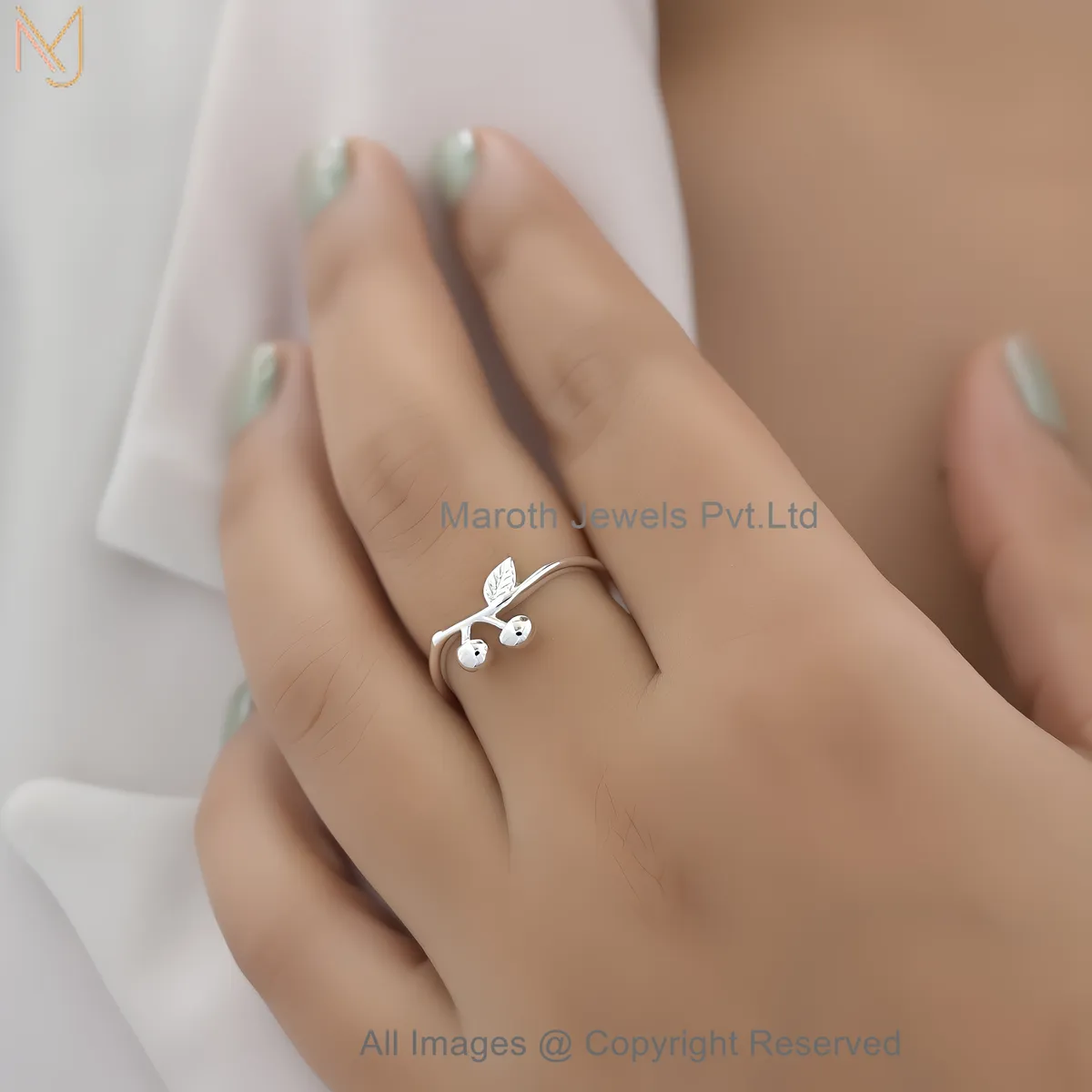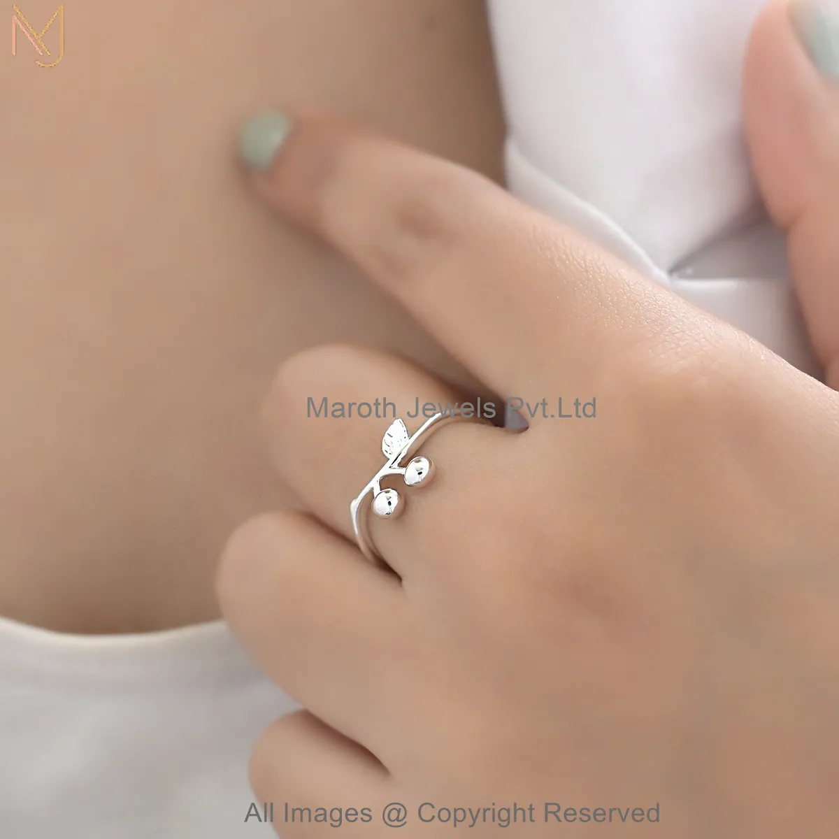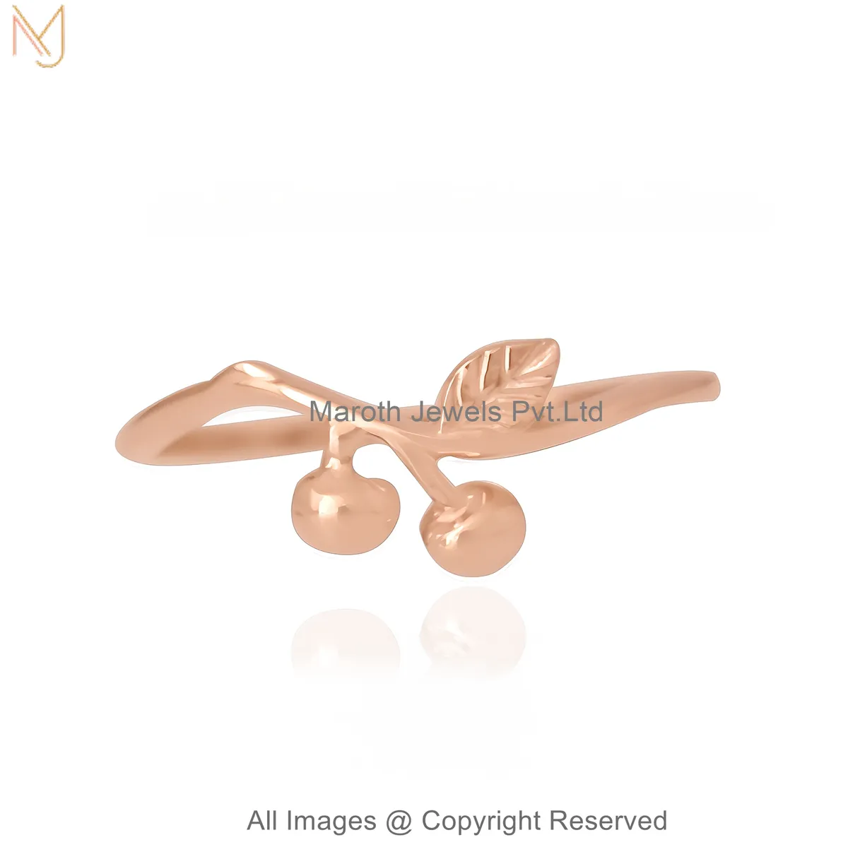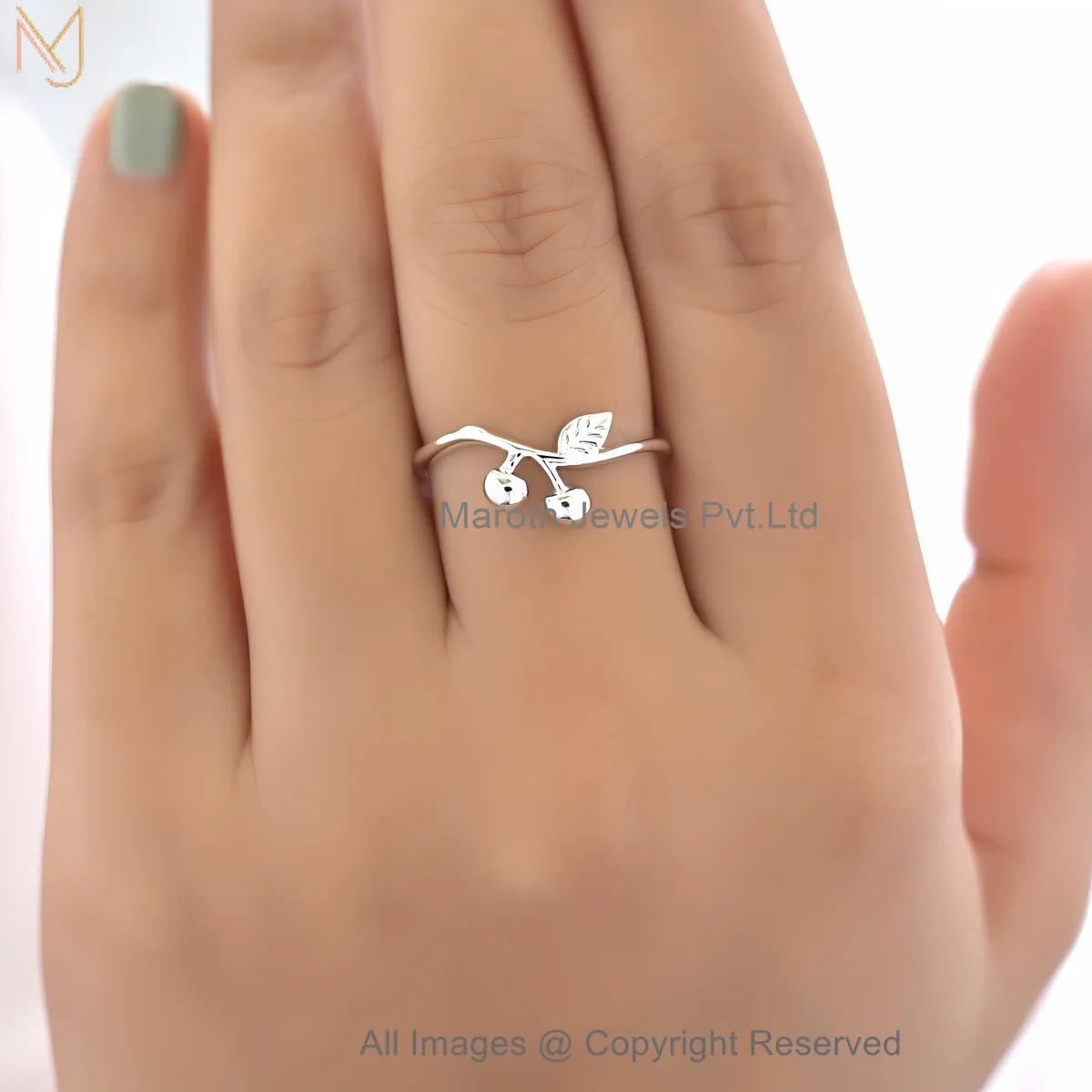 925 Sterling Silver White Gold Plated Cherry Design Ring Adjustable Dainty Fruit Jewelry Supplier