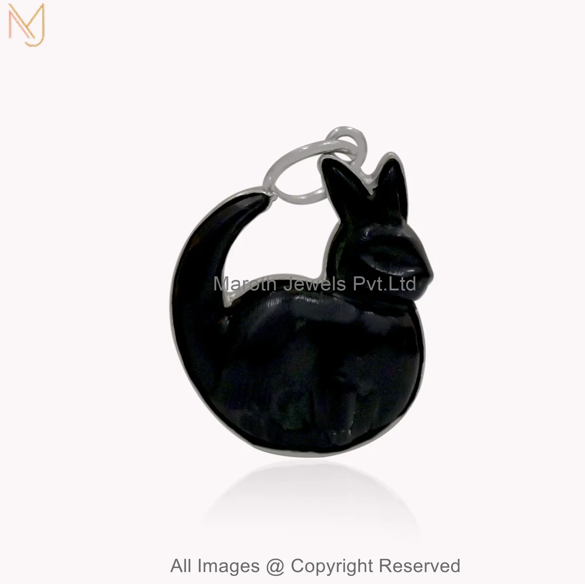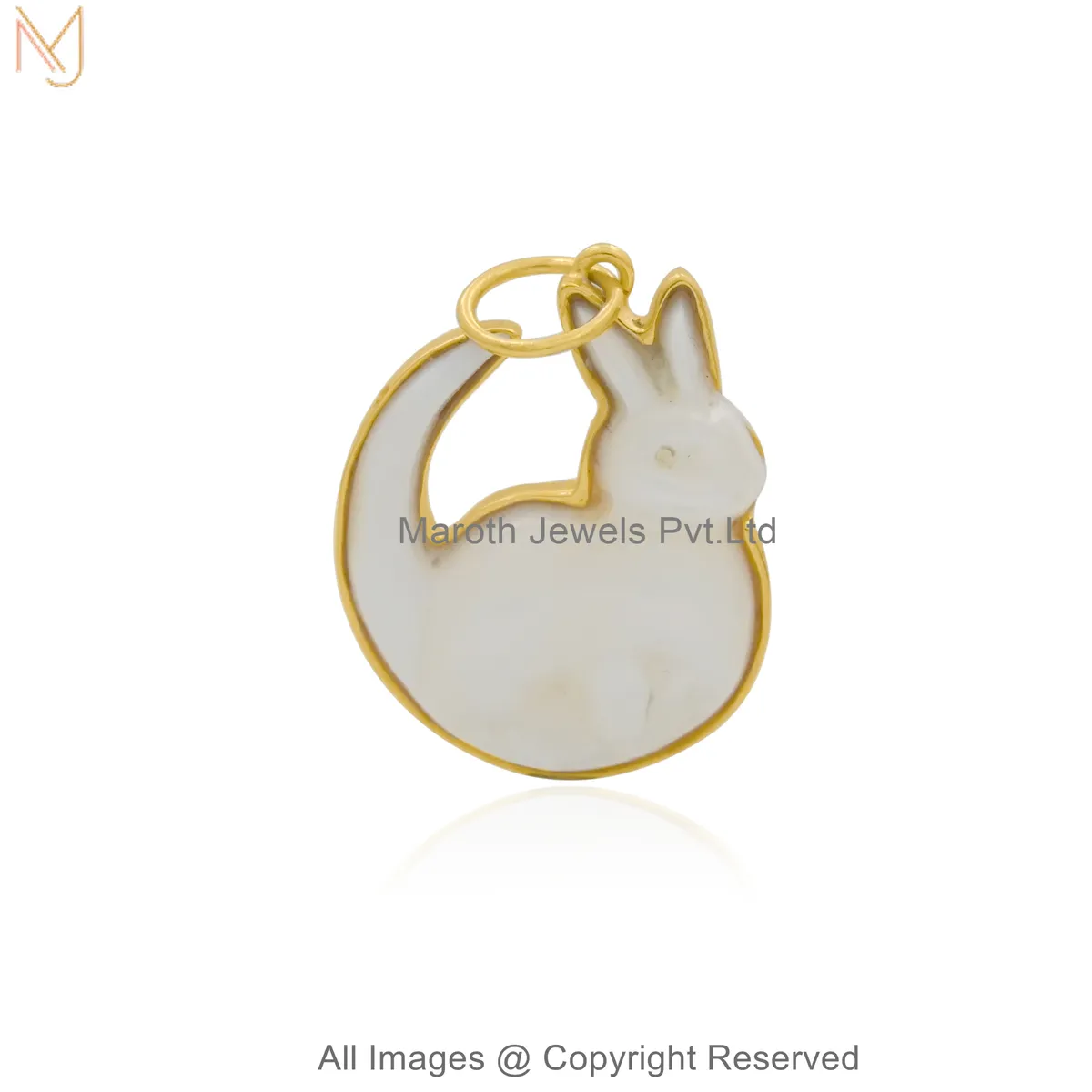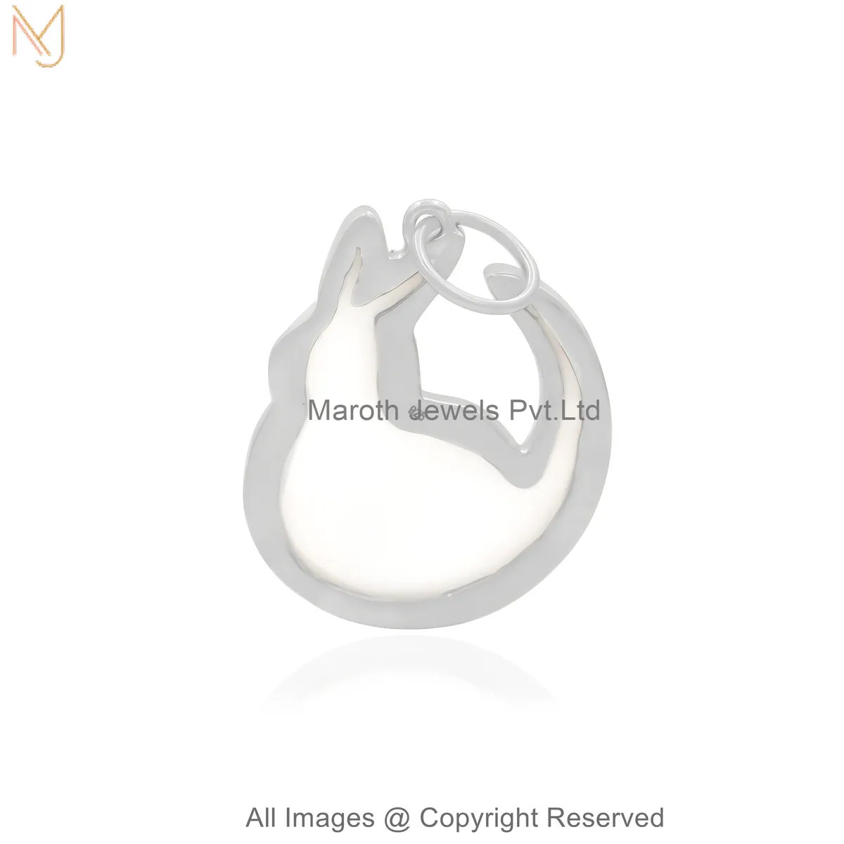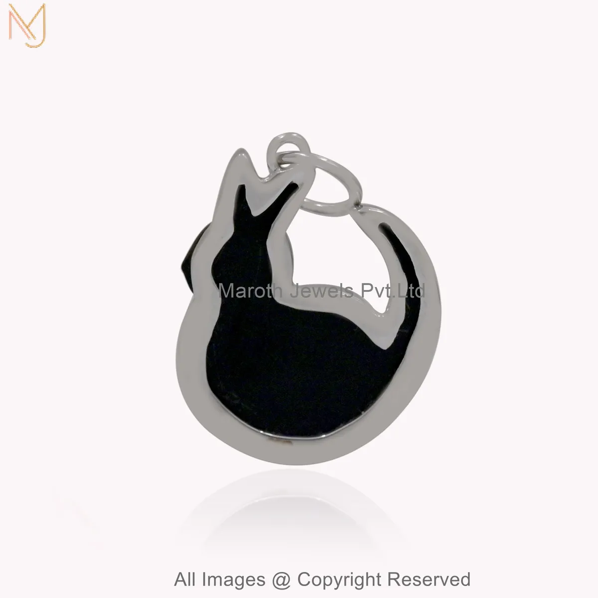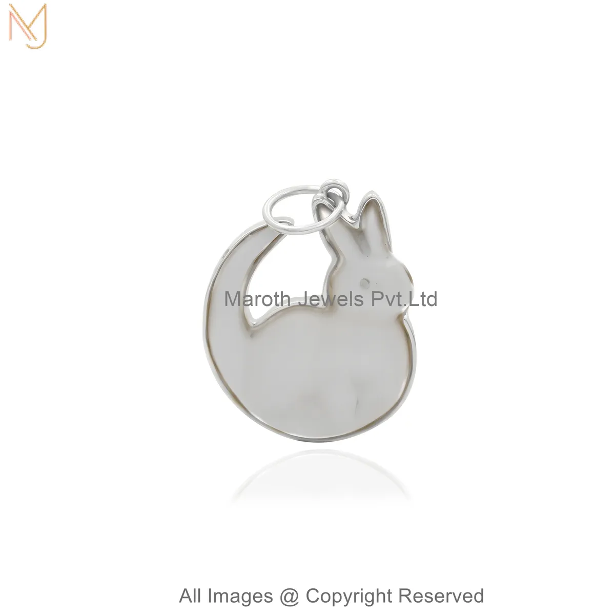 925 Sterling Silver White Gold-Plated Gemstone Bunny Silhouette Charm Pendant Jewelry Supplier