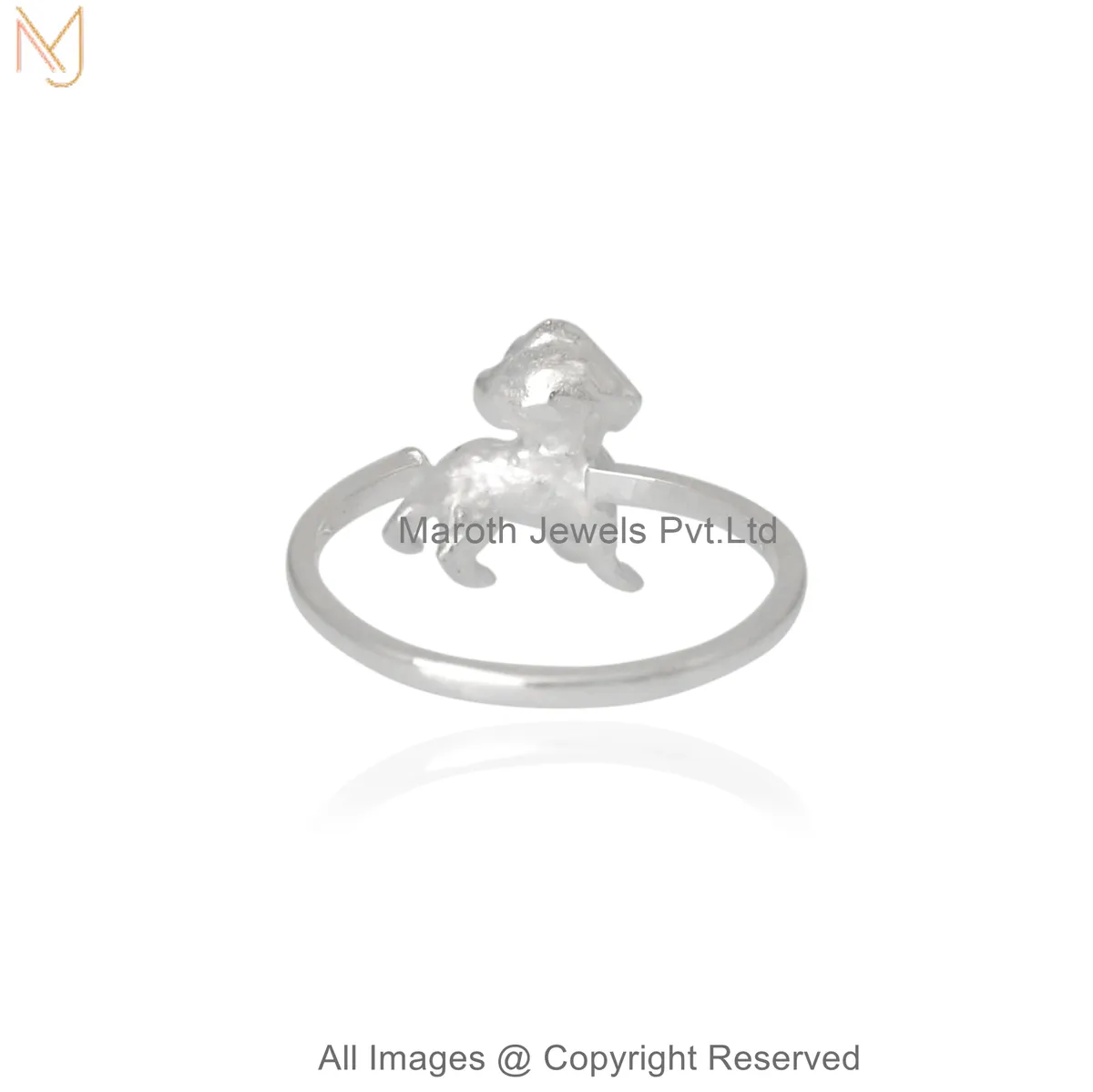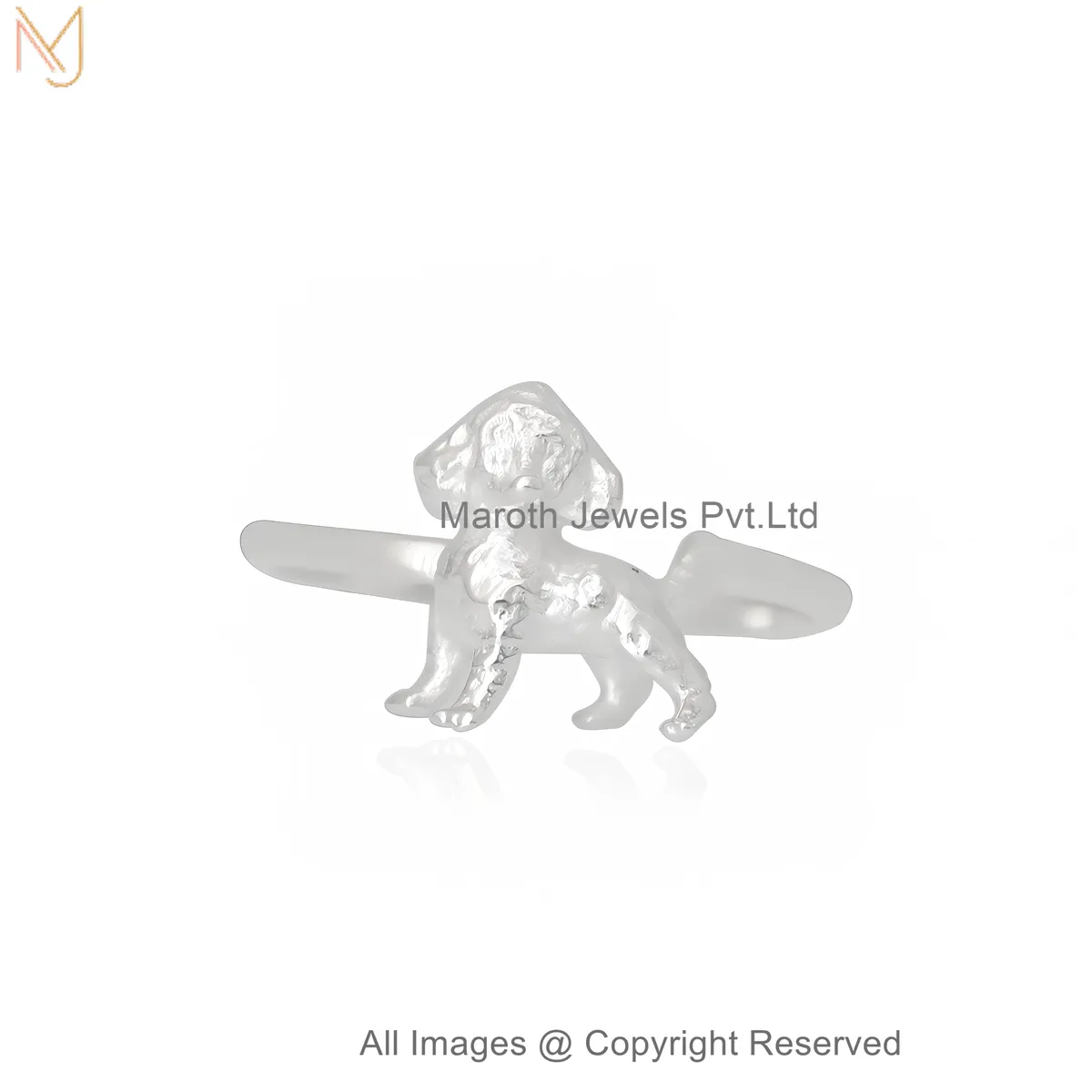 925 Sterling Silver White Gold Plated Poodle Dog Charm Statement Ring Manufacturer