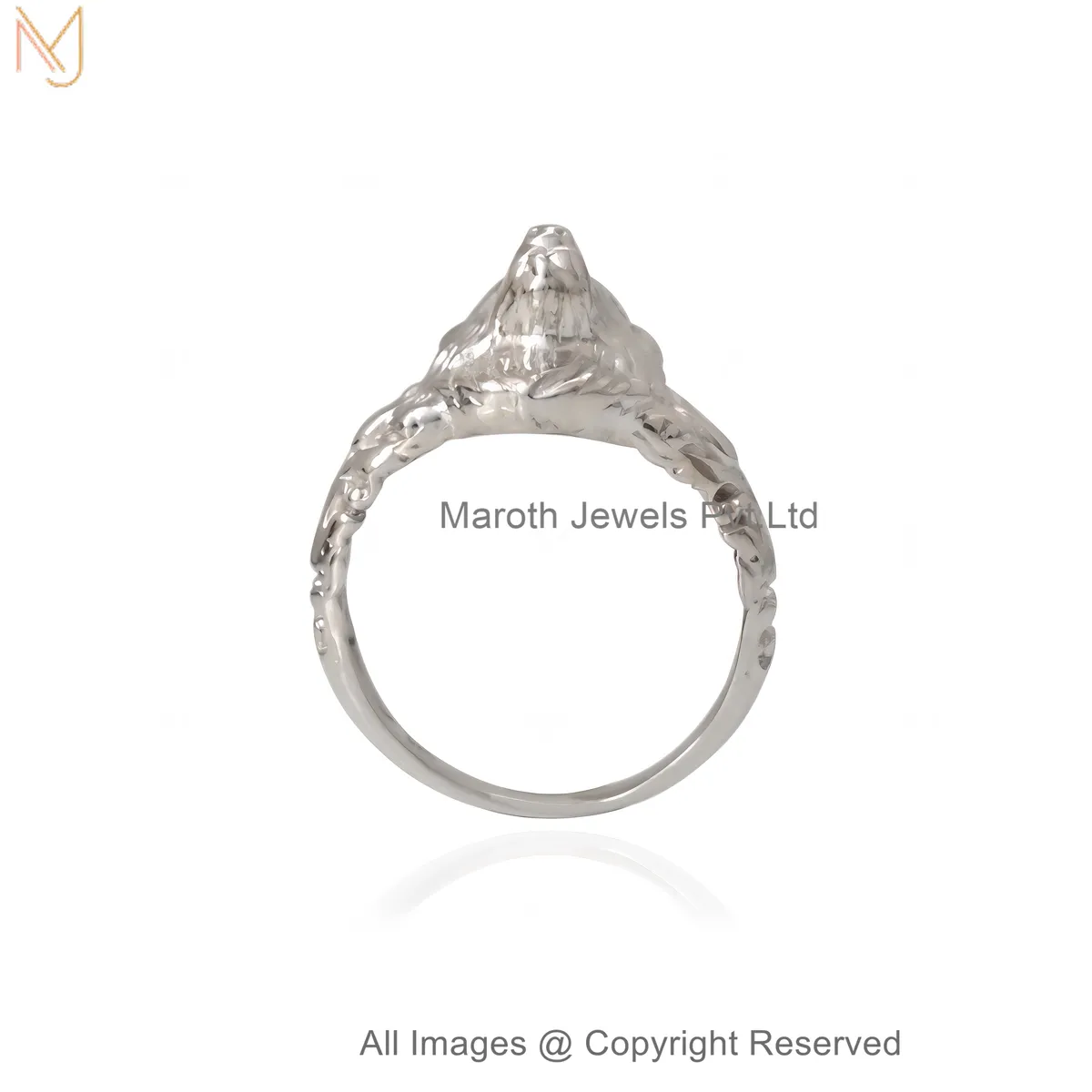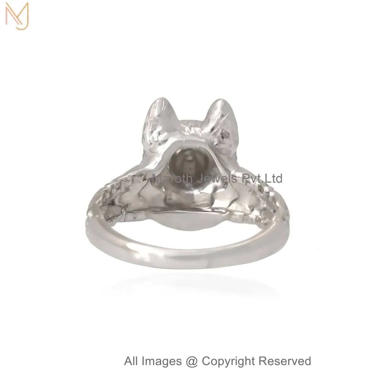 925 Sterling Silver White Gold-Plated Wolf Head Statement Ring Custom Jewelry