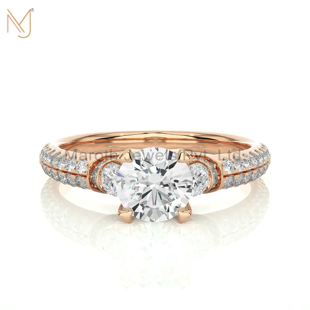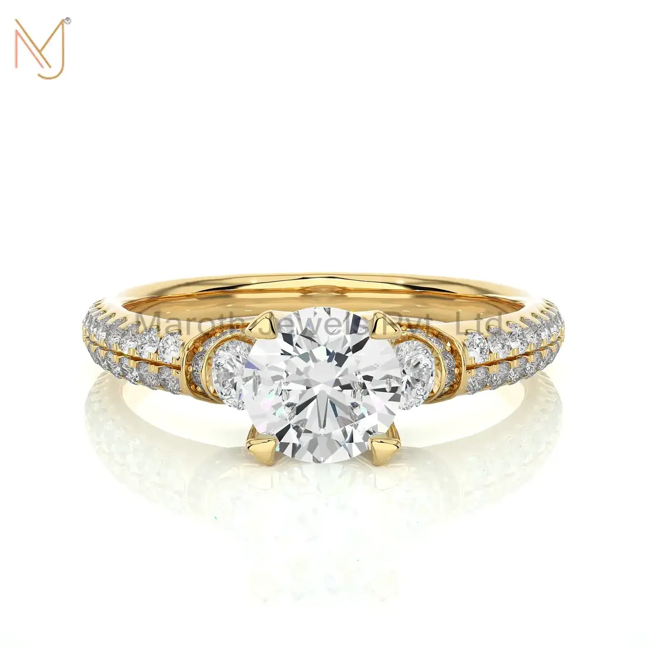 925 Silver Yellow Gold Moissanite Diamond Round Ring Jewelry Supplier