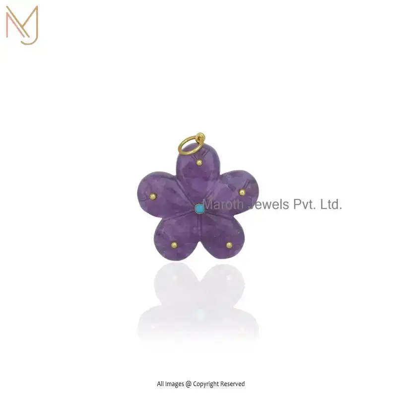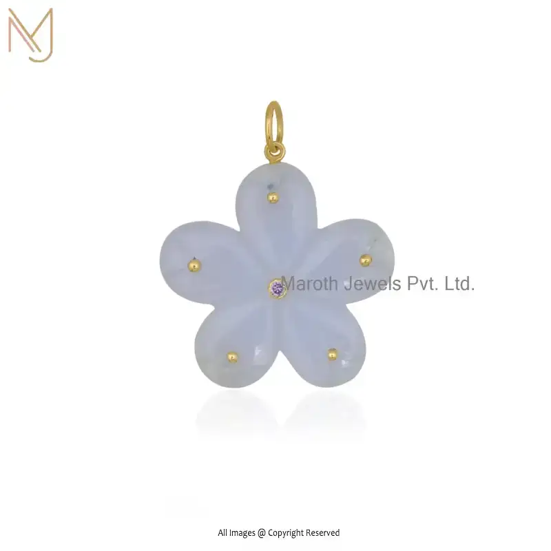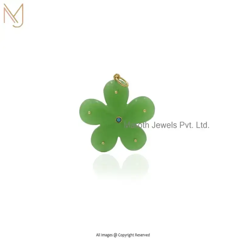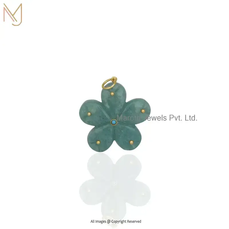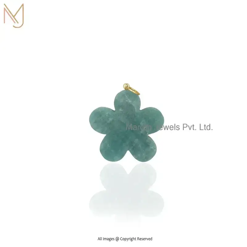 925 Sterling Silver Yellow Gold Plated Amazonite And White CZ Flower Pendant Custom Jewelry'