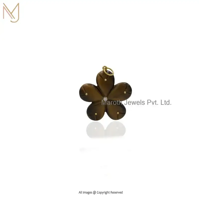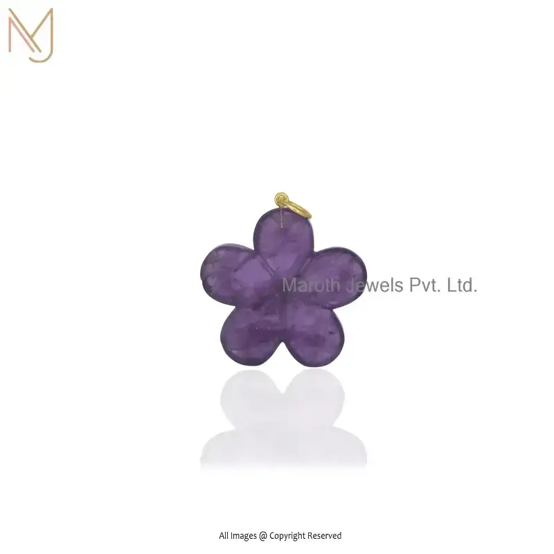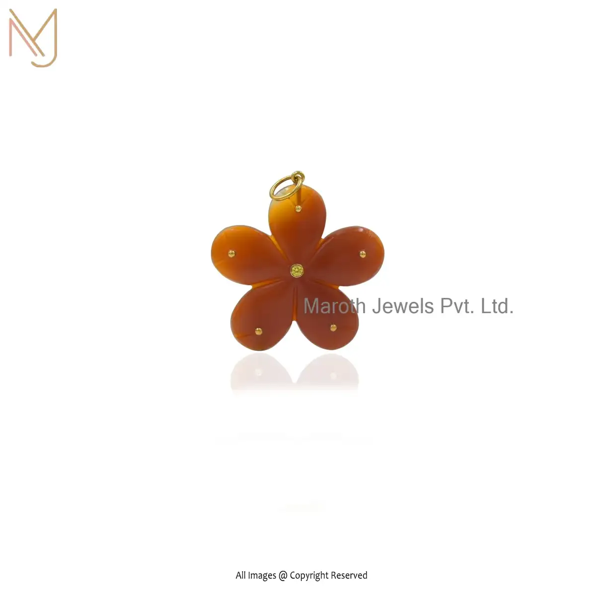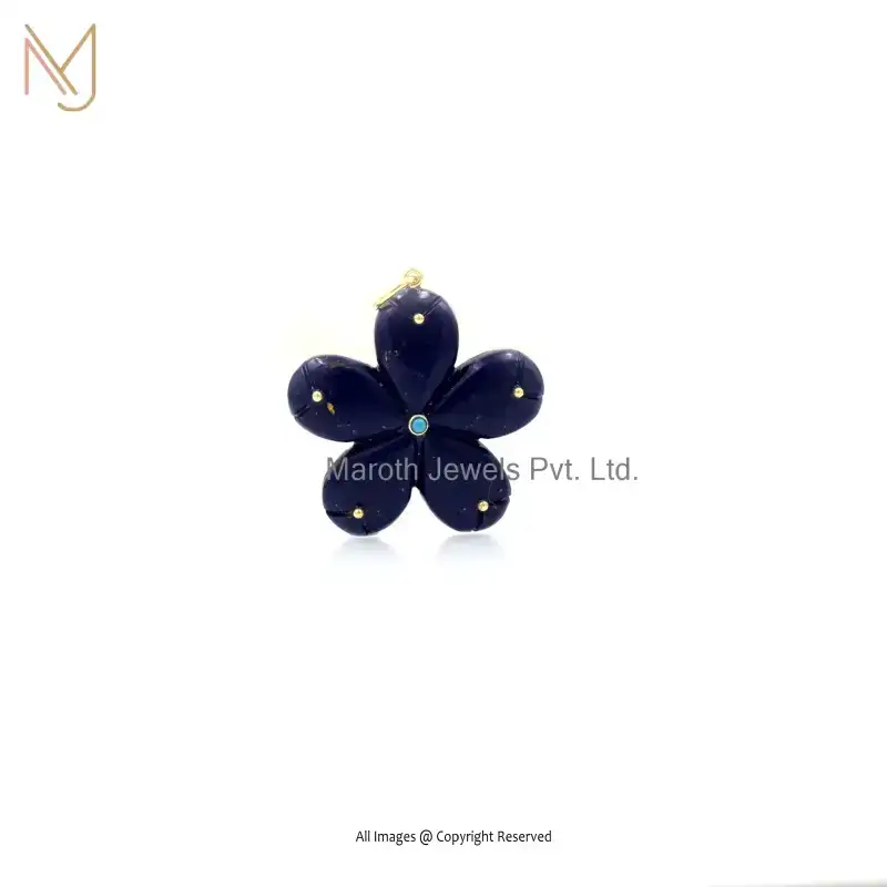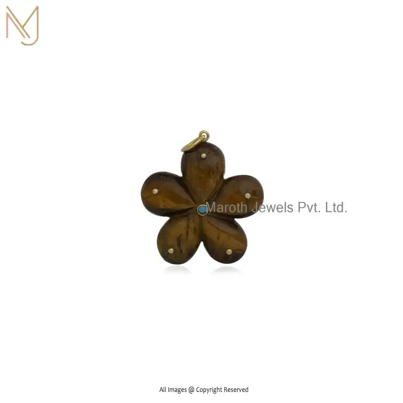925 Sterling Silver Yellow Gold Plated Amazonite And White CZ Flower Pendant Custom Jewelry'