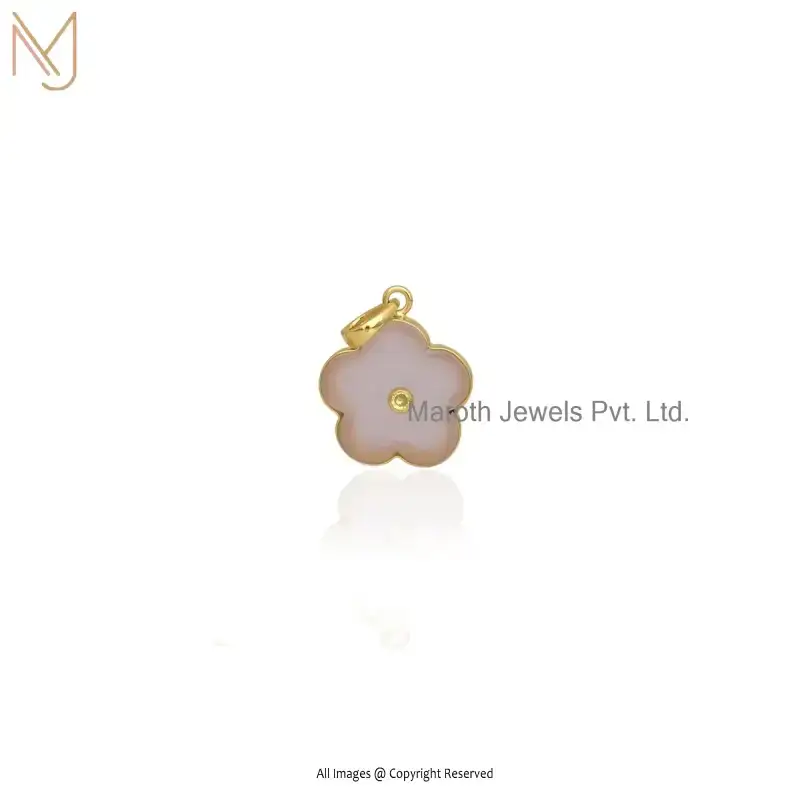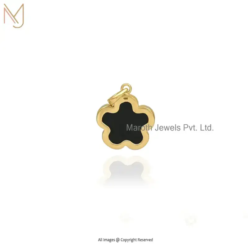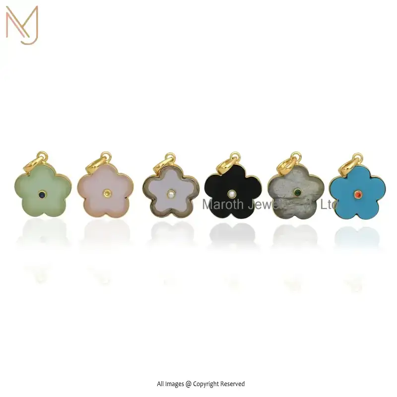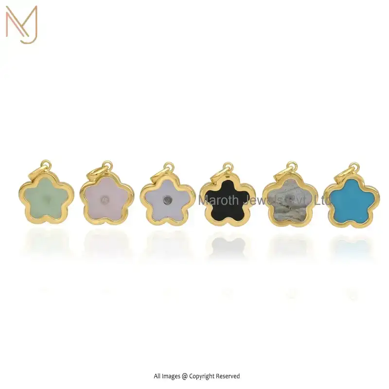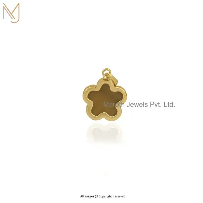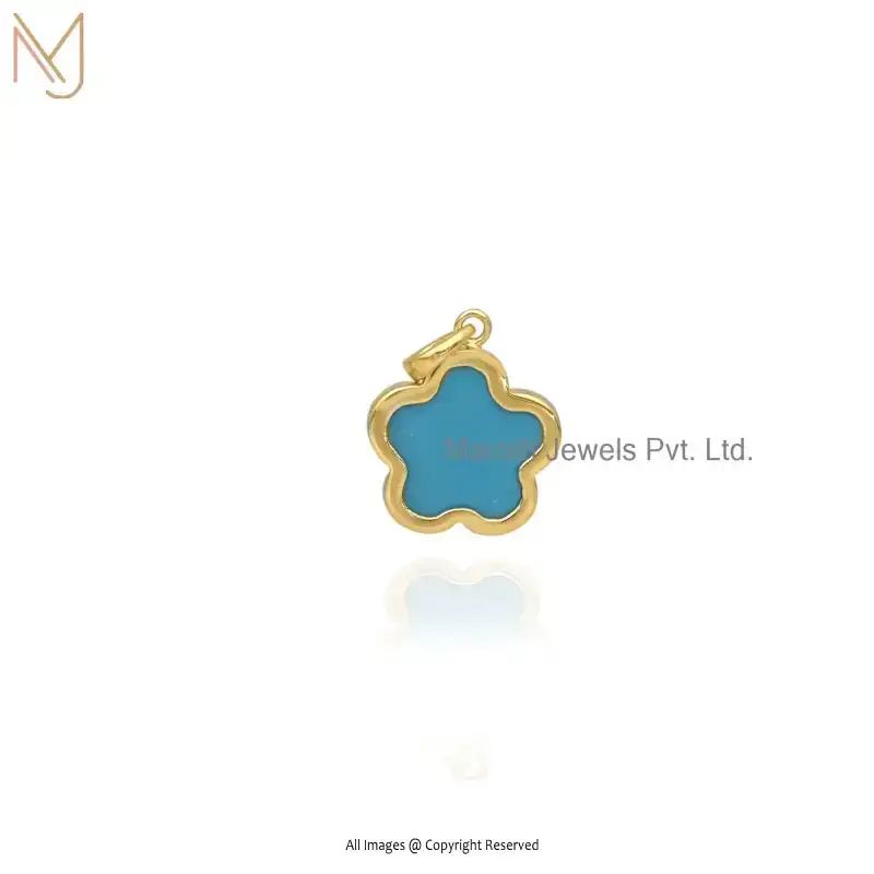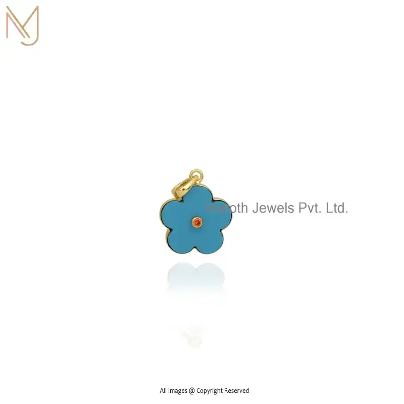 925 Sterling Silver Yellow Gold Plated Blue CZ Flower Pendant Jewelry Supplier