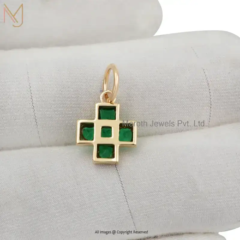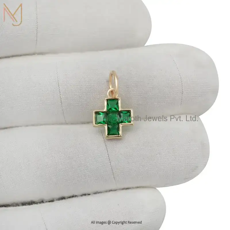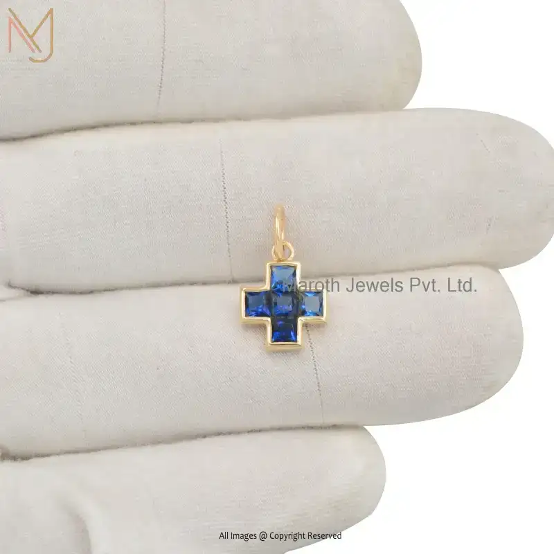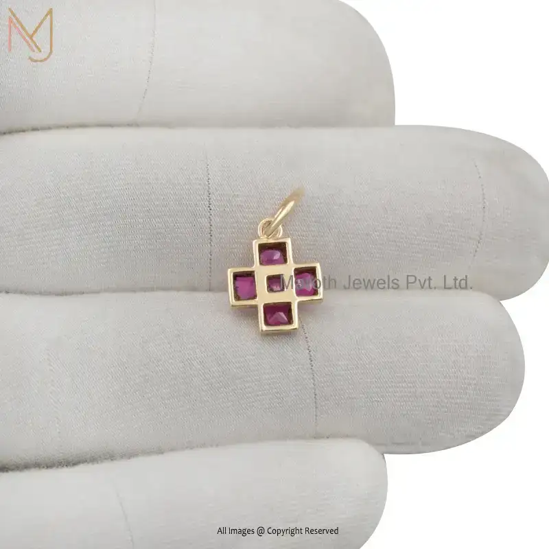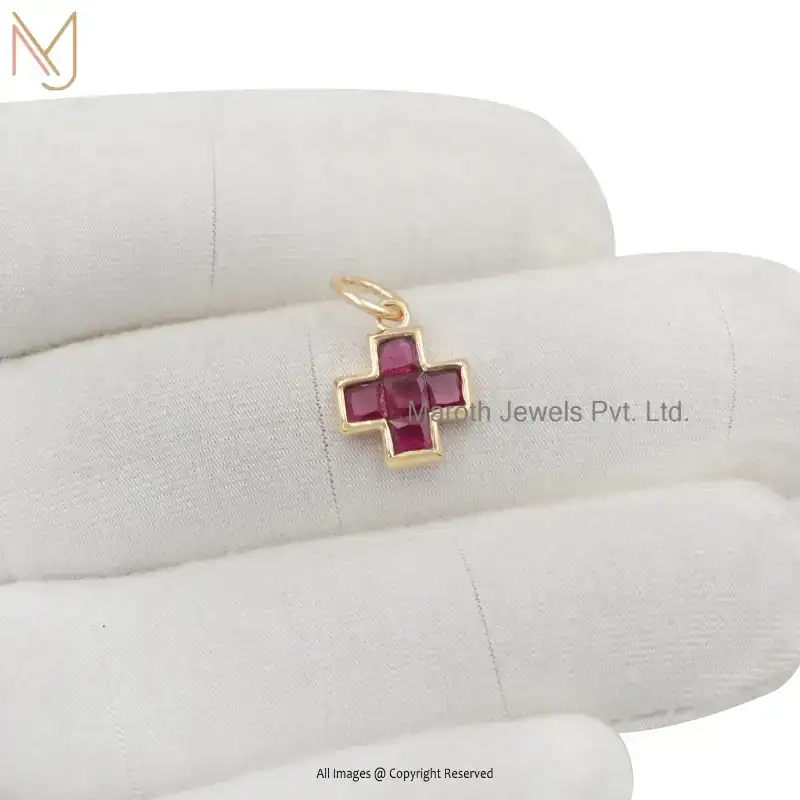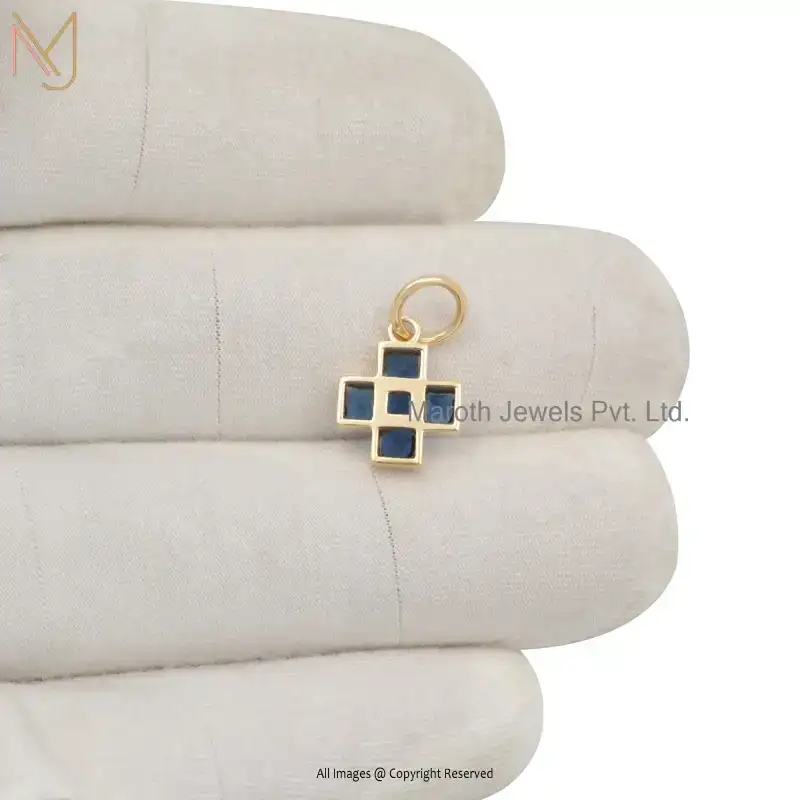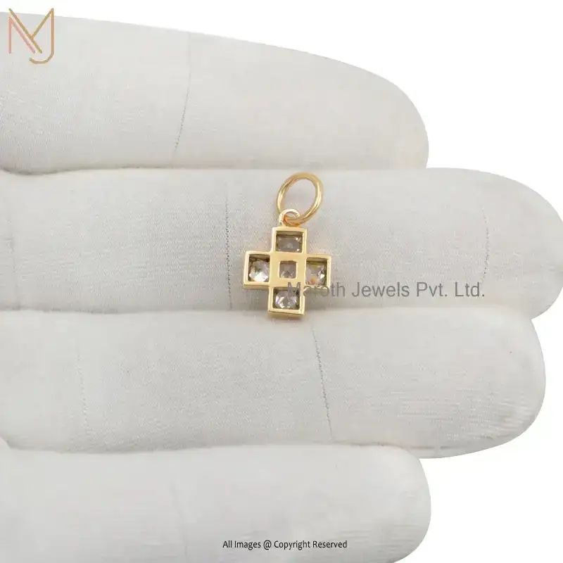 925 Sterling Silver Yellow Gold Plated Cubic Zircon Diamond Cross Pendant Custom Jewelry