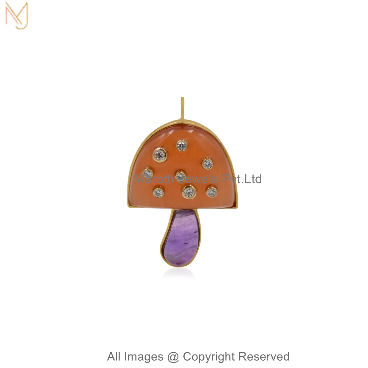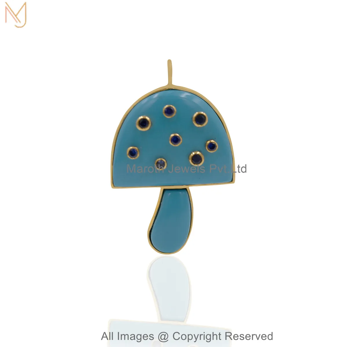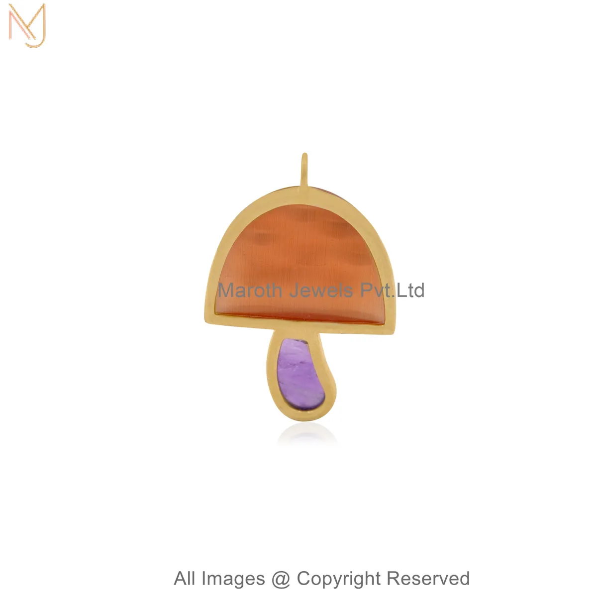 925 Sterling Silver Yellow Gold Plated Cubic Zircon Handcrafted Gemstone Mushroom Pendant Jewelry Supplier