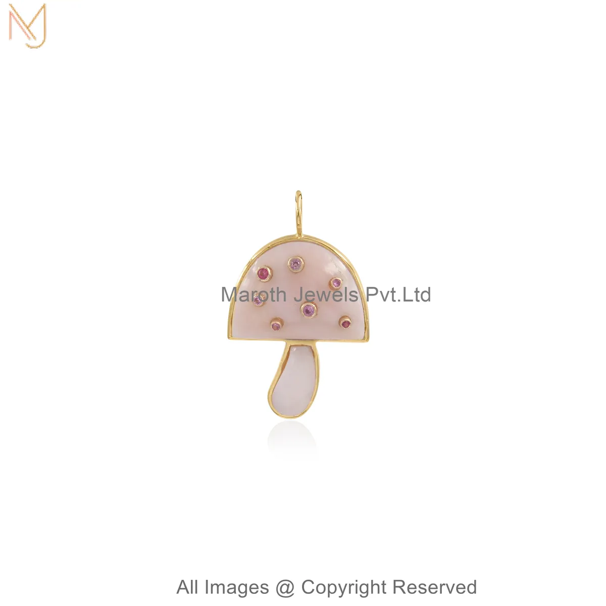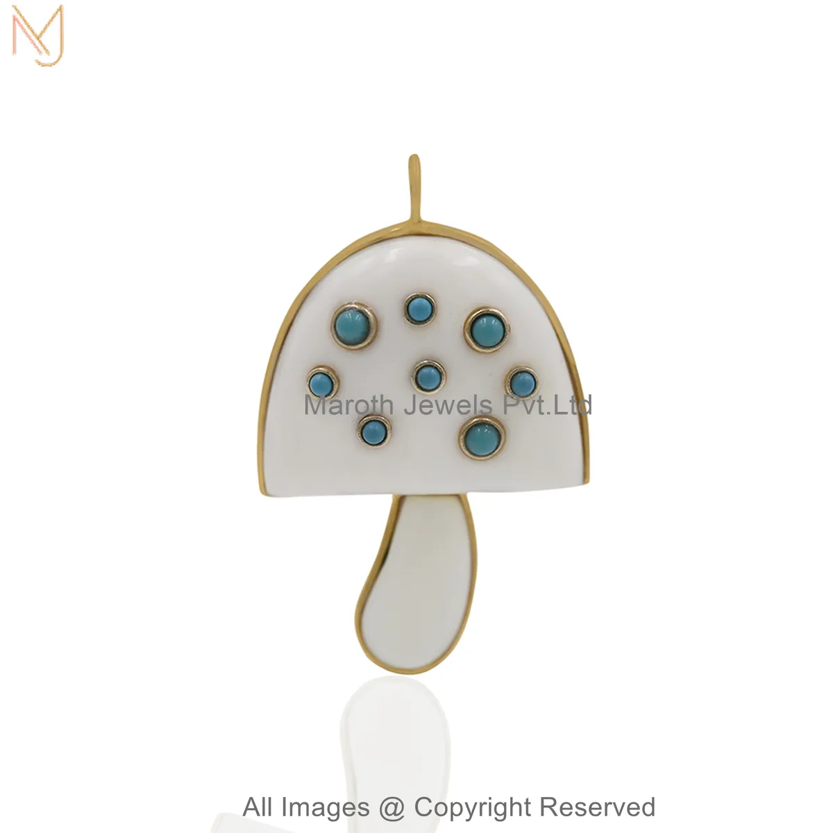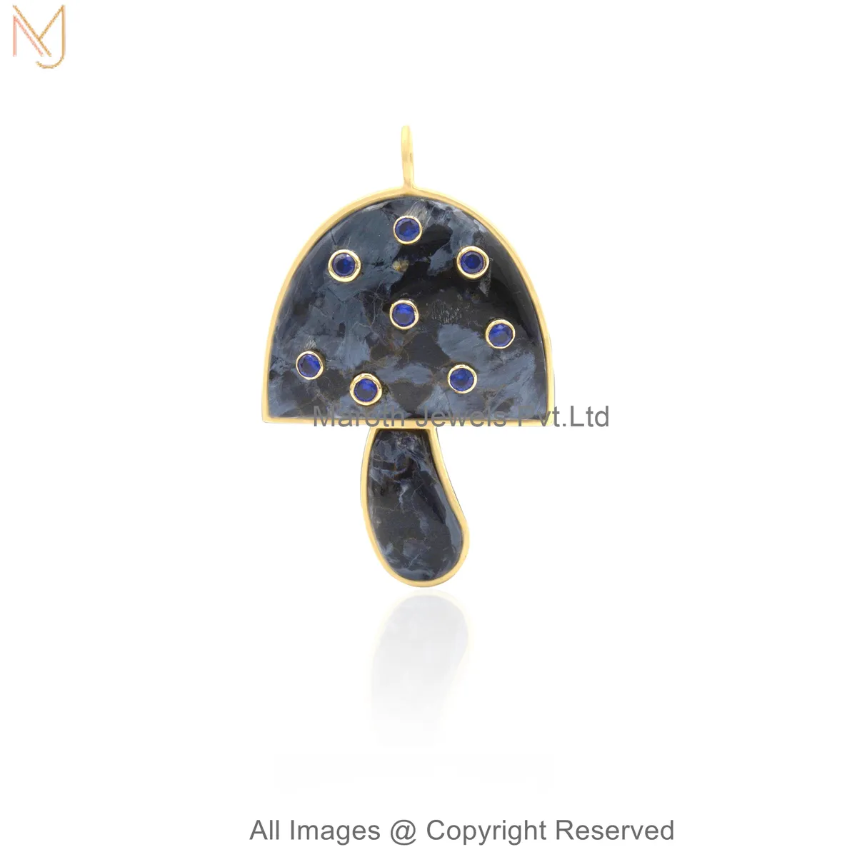 925 Sterling Silver Yellow Gold Plated Cubic Zircon Handcrafted Gemstone Mushroom Pendant Jewelry Supplier
