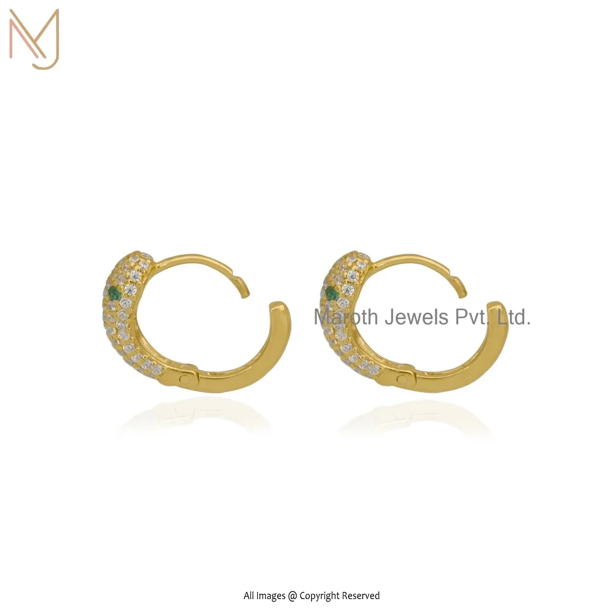 925 Sterling Silver Yellow Gold Plated Diamond & Emerald Snake Huggies Earring USA