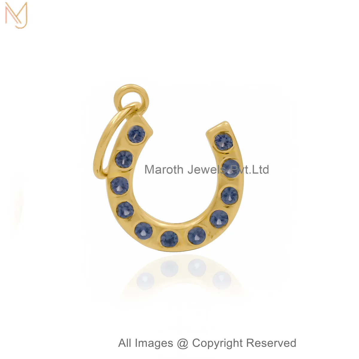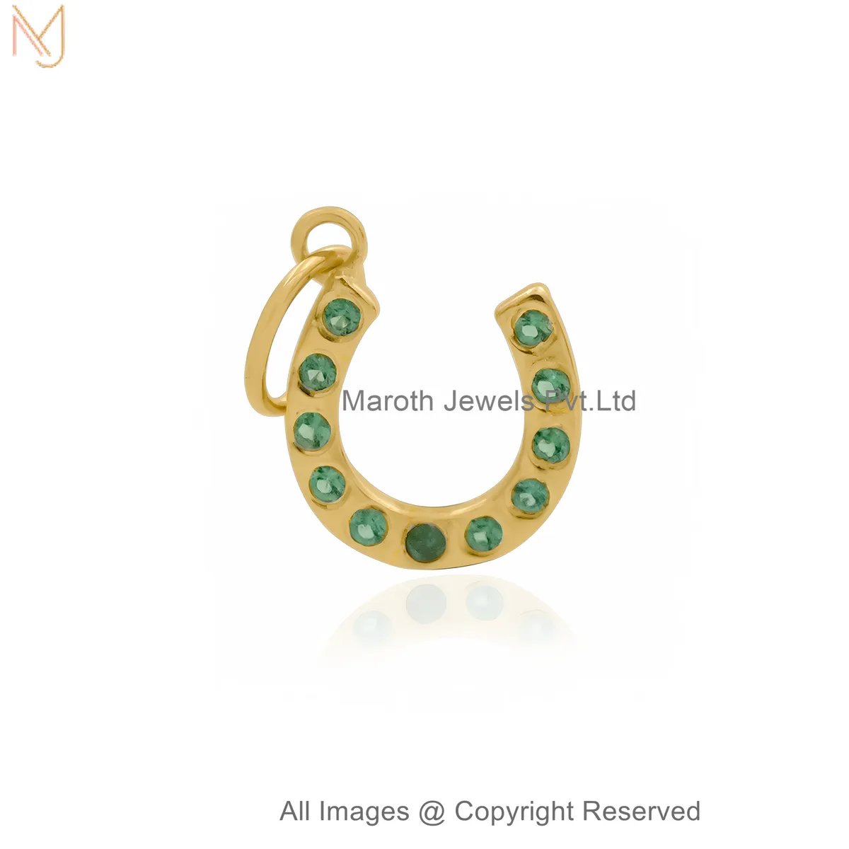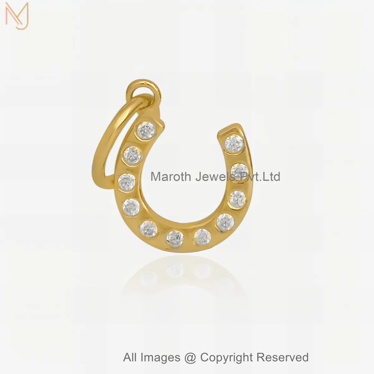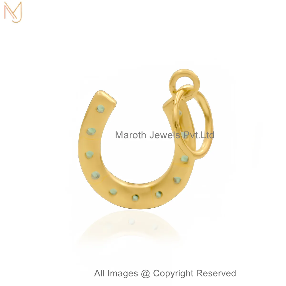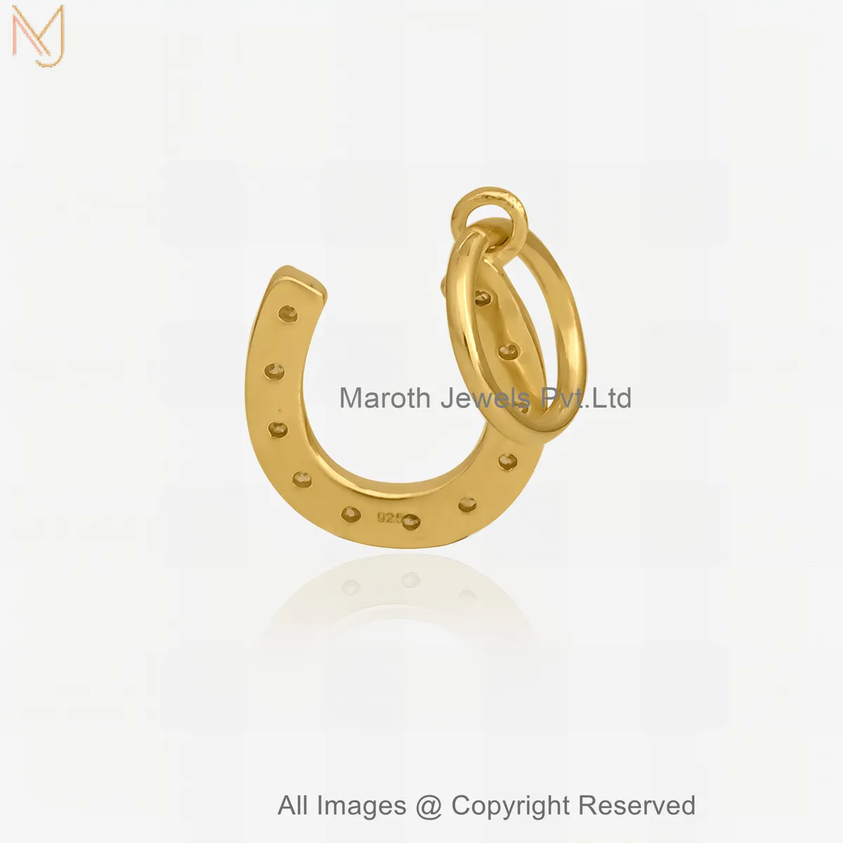 925 Sterling Silver Yellow Gold-Plated Diamond Gemstone Horseshoe Charm Pendant Jewelry Supplier