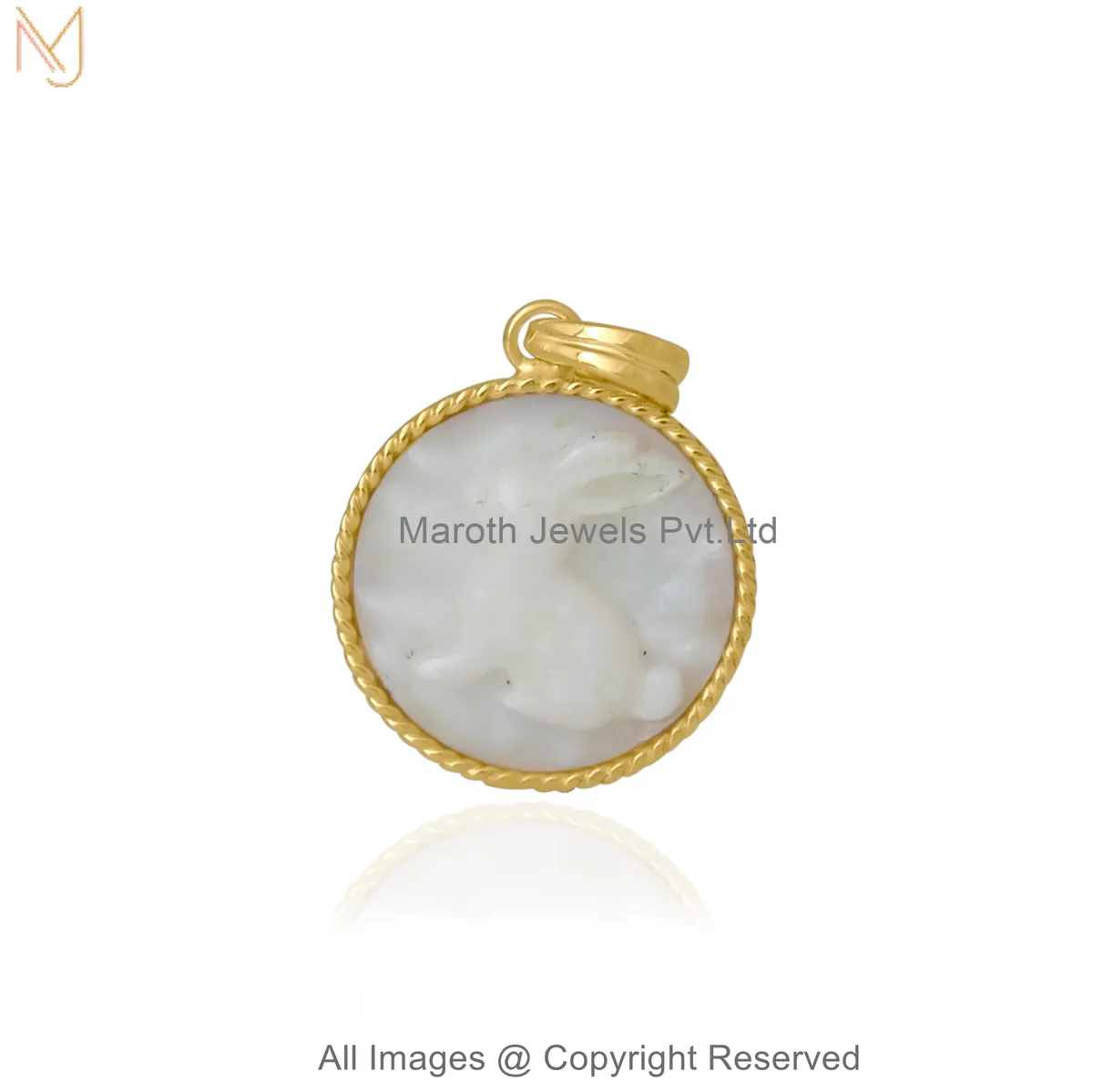 925 Sterling Silver Yellow Gold-Plated Gemstone Cute Bunny Disc Charm Pendant Manufacturer