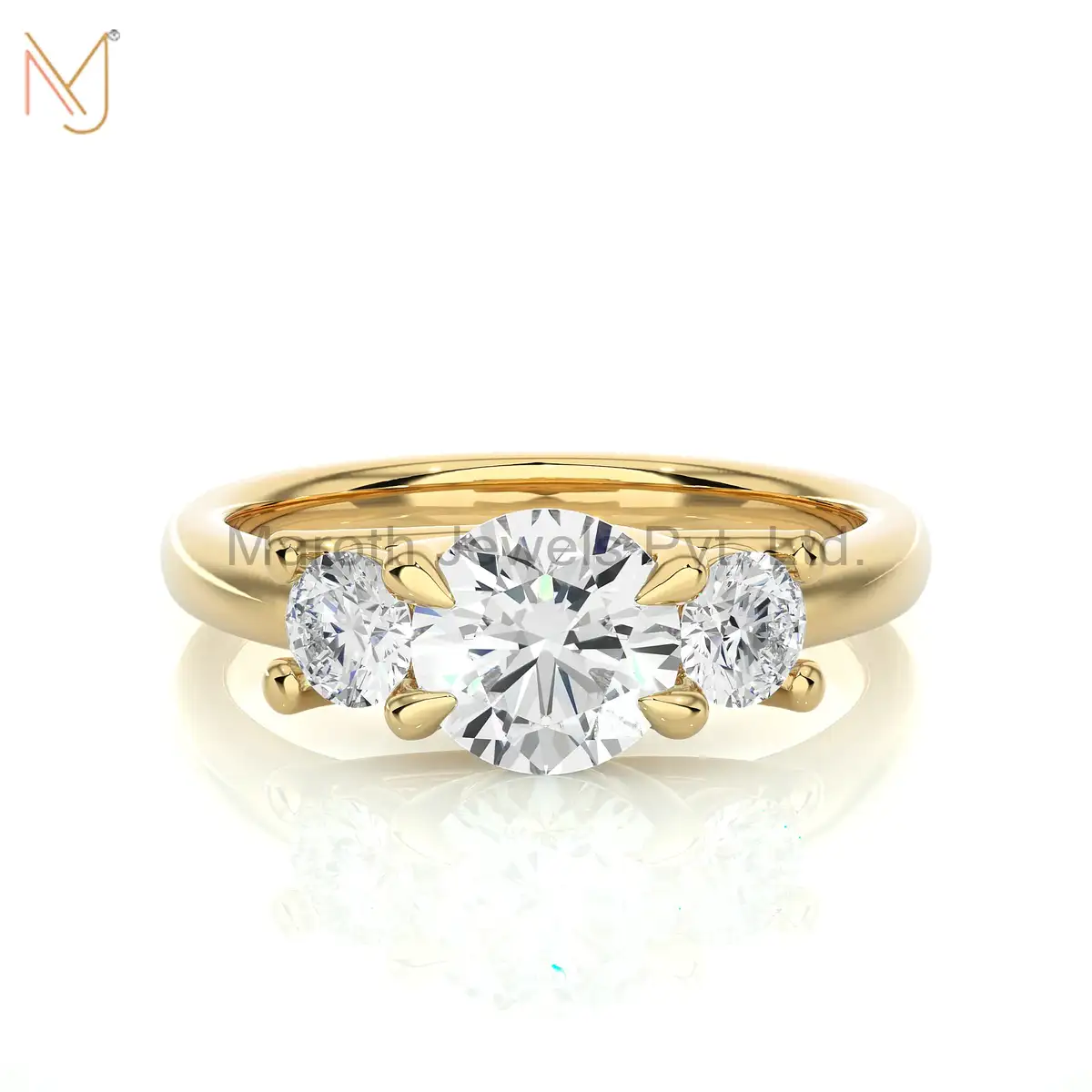 925 Silver Yellow Gold Moissanite Diamond Round Ring Jewelry Supplier