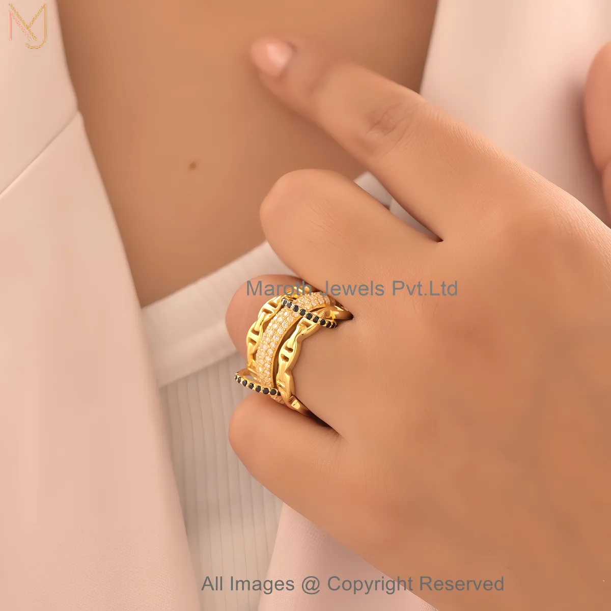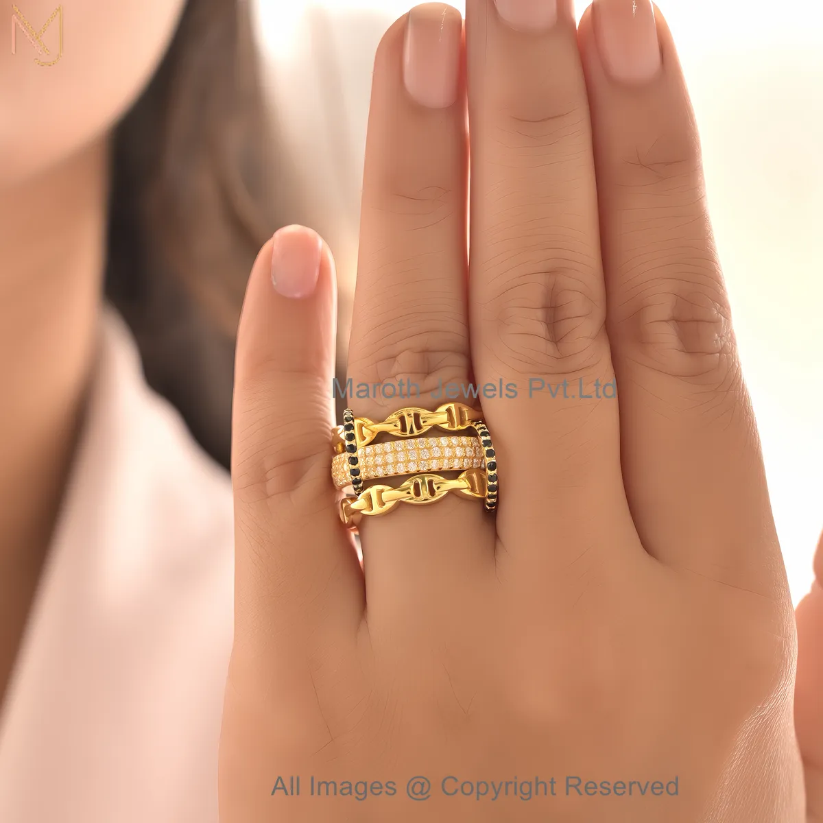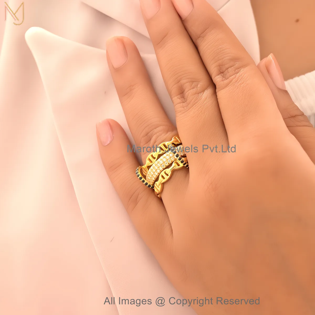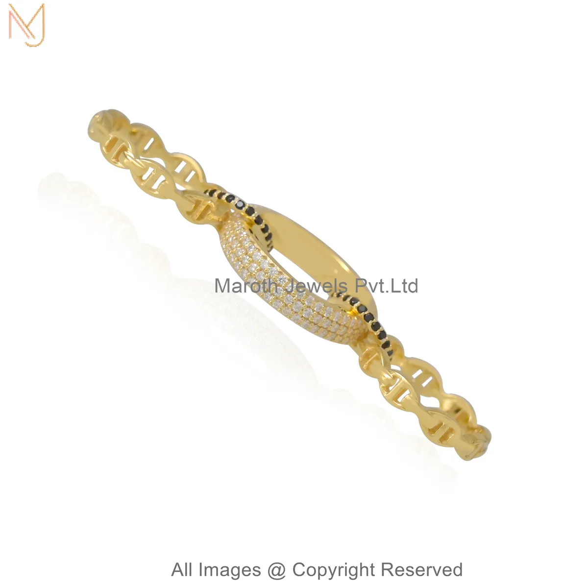 925 Sterling Silver Yellow Gold-Plated Multi-Row CZ Chain Link Statement Ring Jewelry Supplier