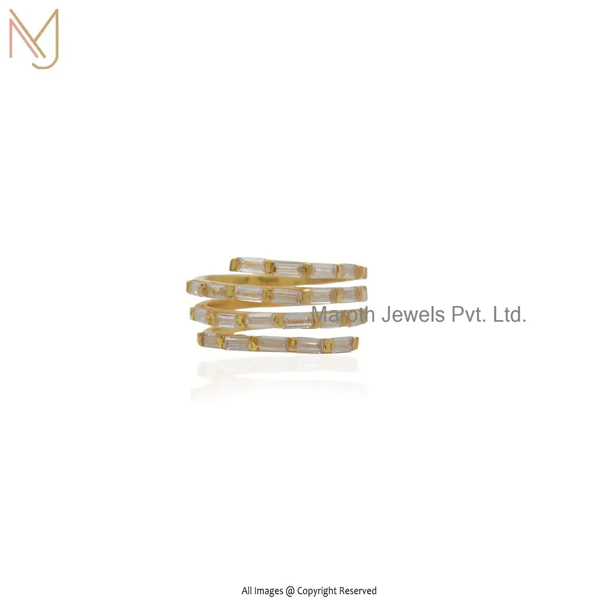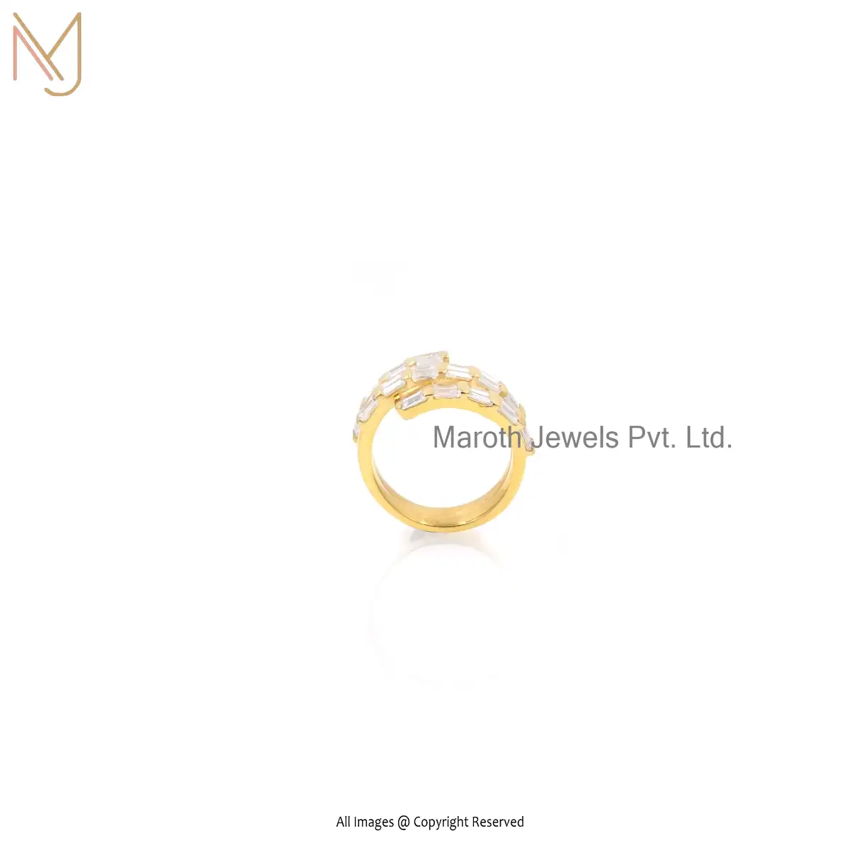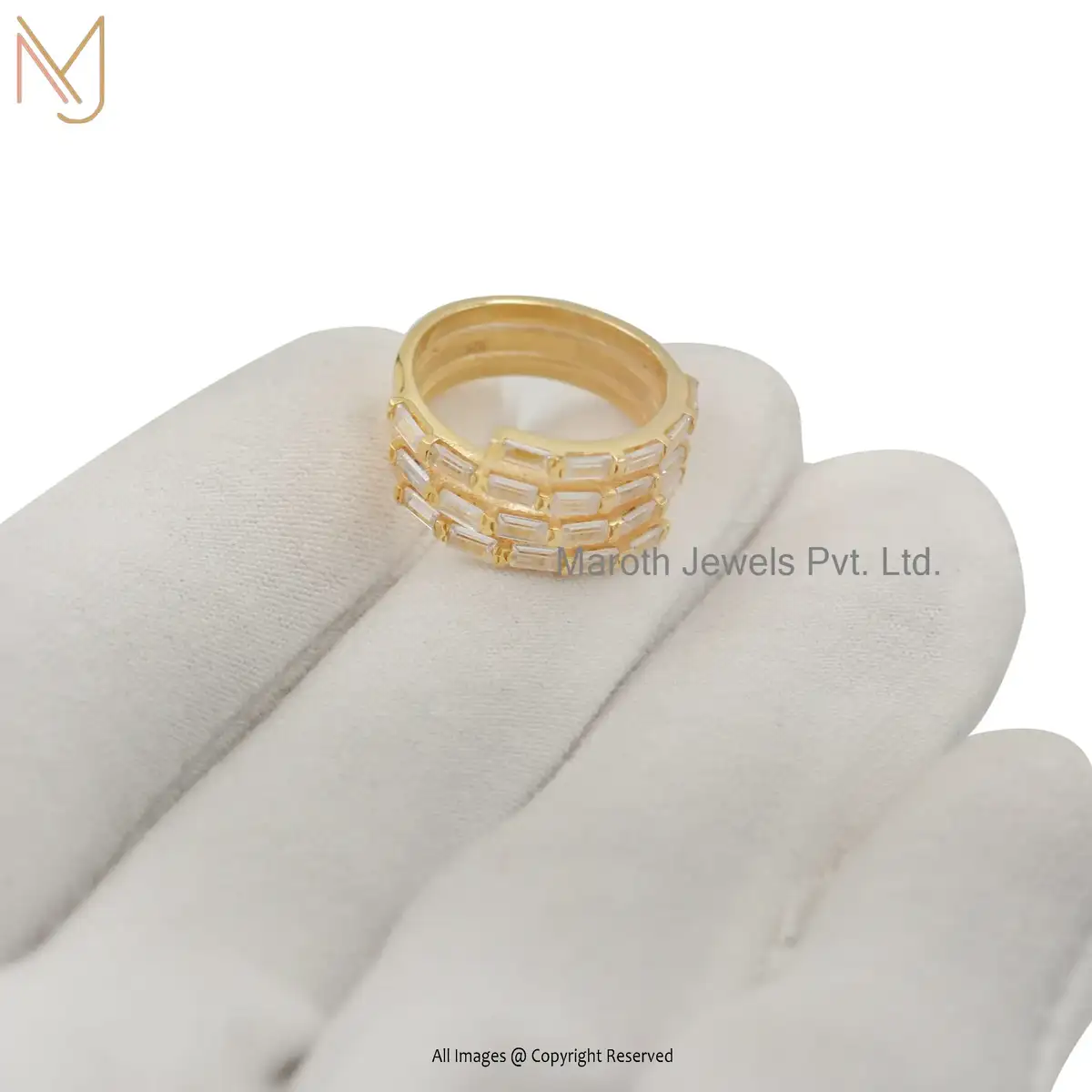 925 Silver Yellow Gold Plated White Topaz Baguette Ring Jewelry Supplier