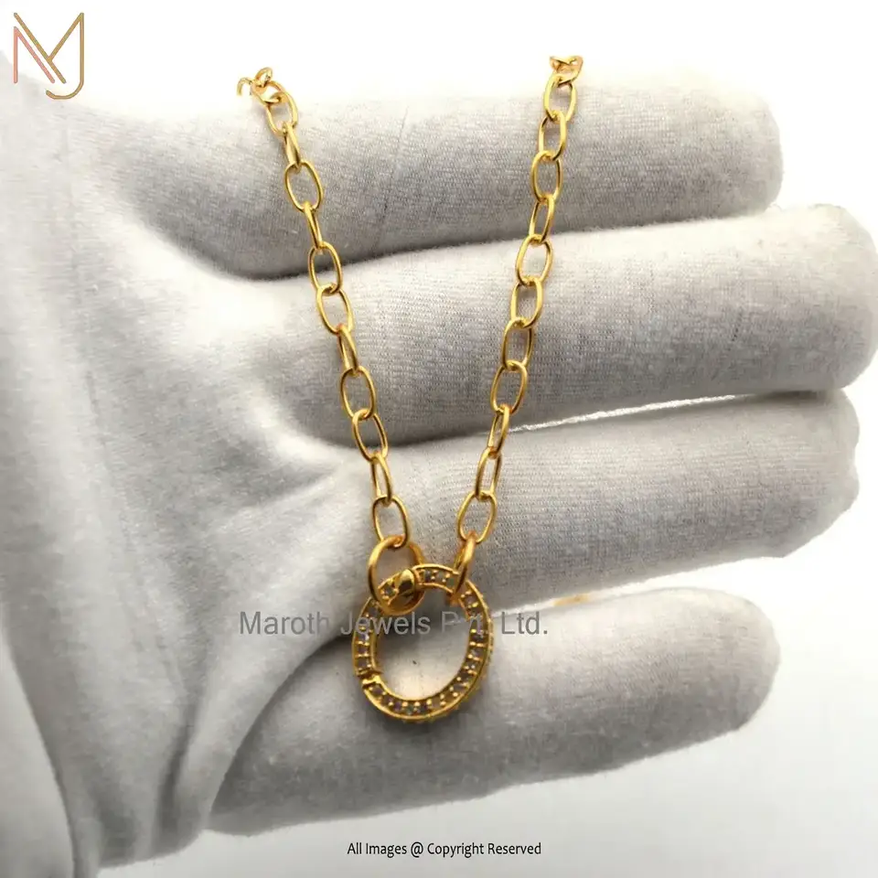 925 Sterling Silver Yellow Gold RH Finding Necklace Pave Diamond Snap Lock Finding Jewelry Manufacturer