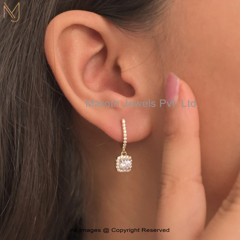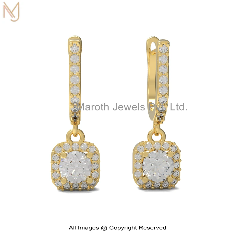 9K Yellow Gold Cubic Zircon Radiant Diamond Dangle Earring Jewelry Supplier
