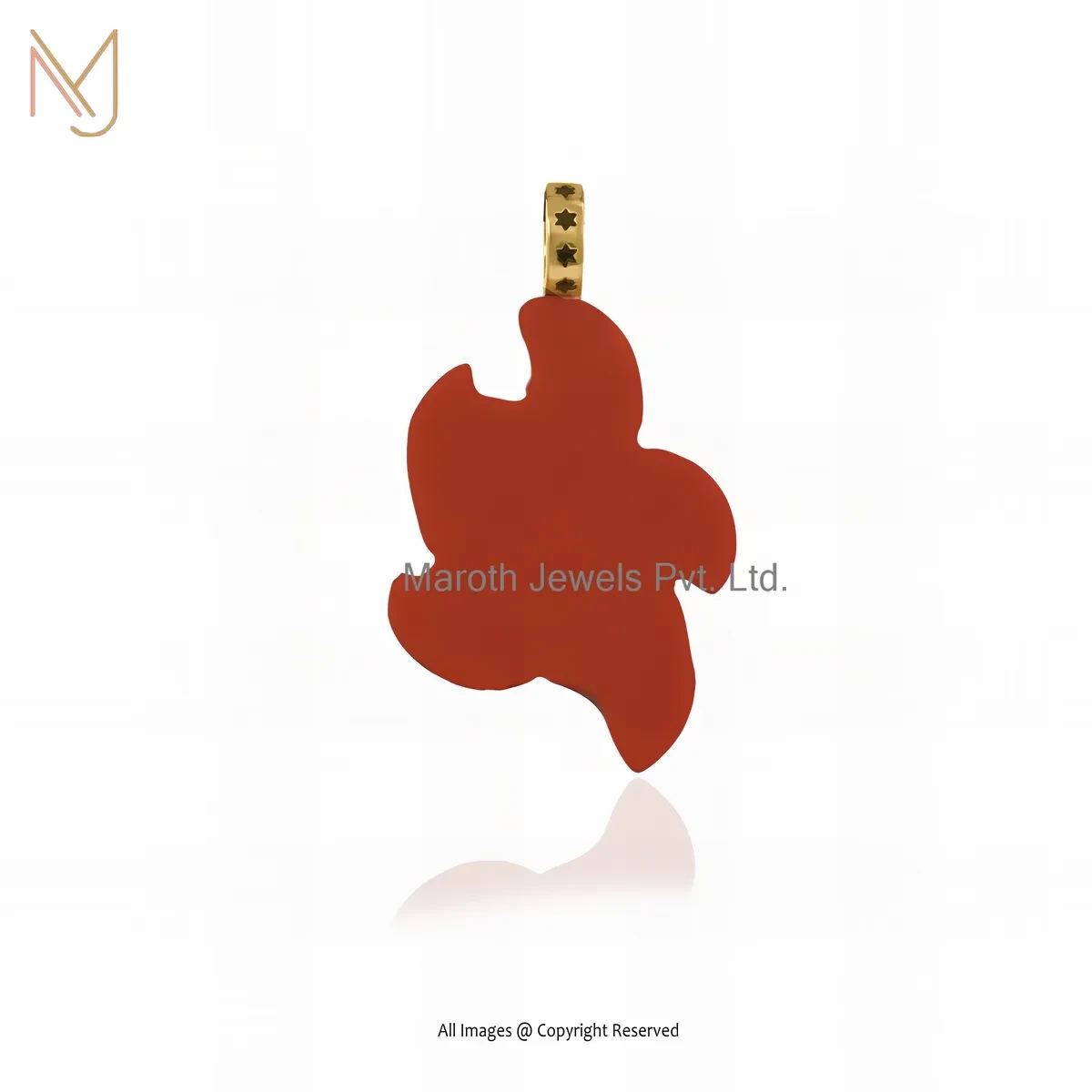 9K Yellow Gold White Topaz , Black Enamel , Red Coral Starfish Charm Pendant USA