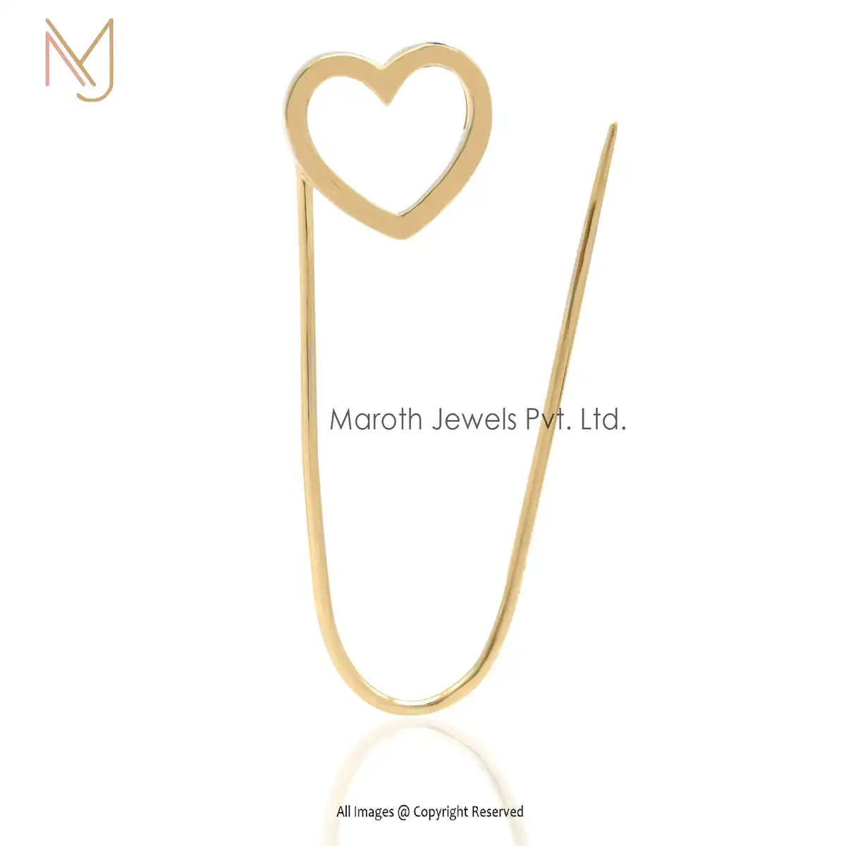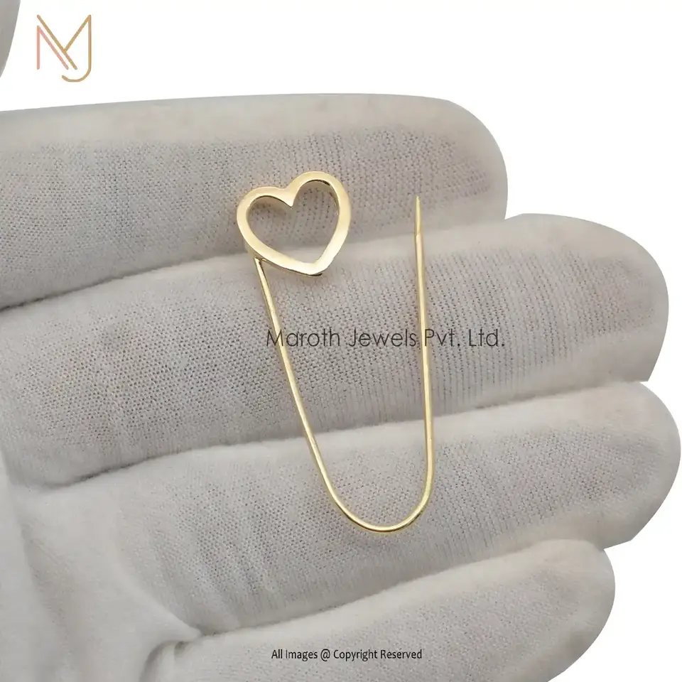 Private Label 14K Gold Heart Safety Pin Charm Holder
