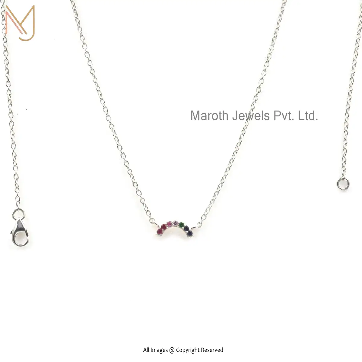 Private Label 14K Gold Multi Gemstone Rainbow Chain Necklace Jewelry