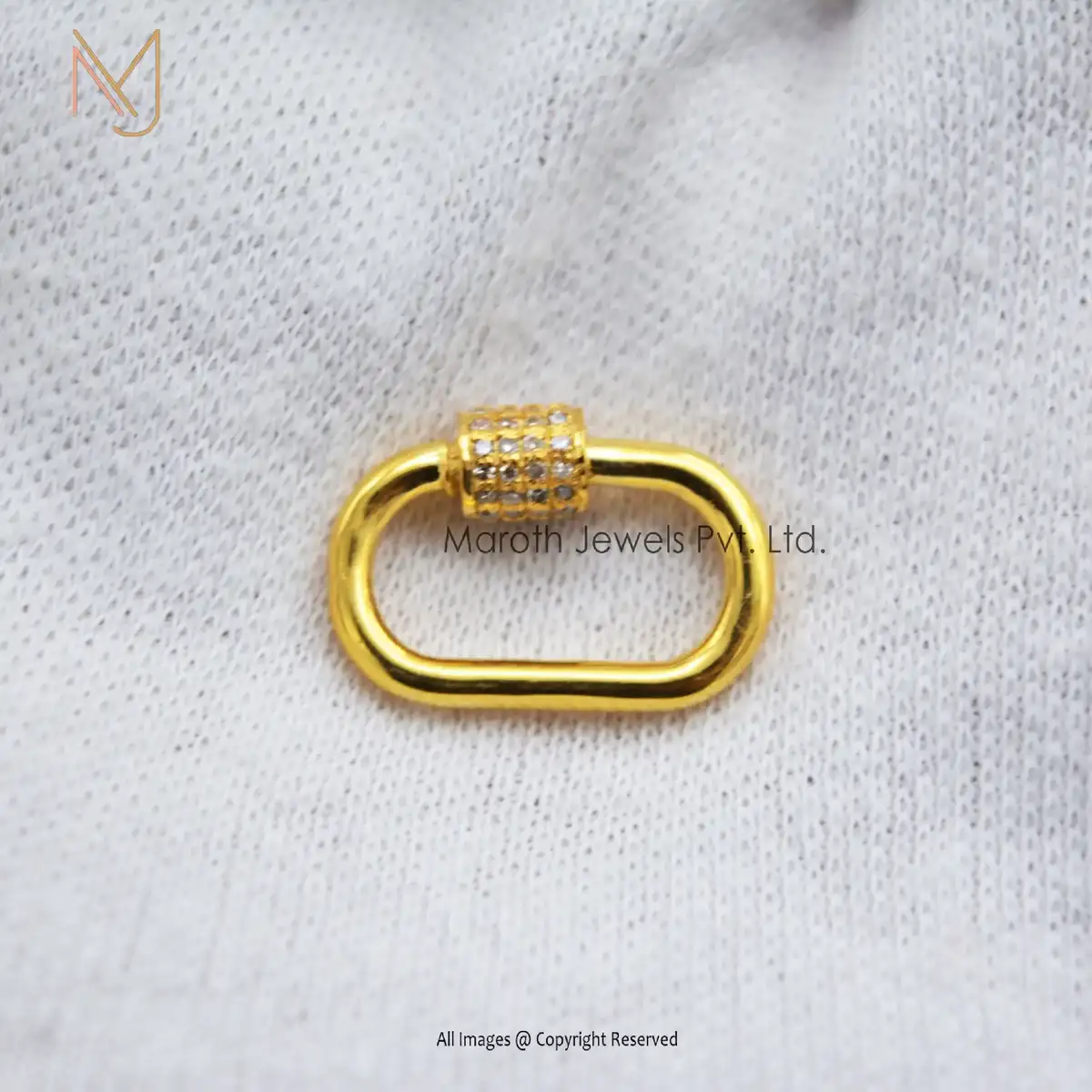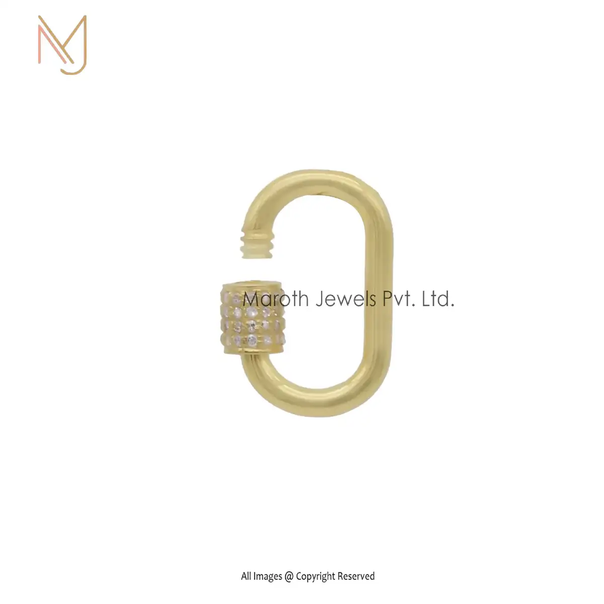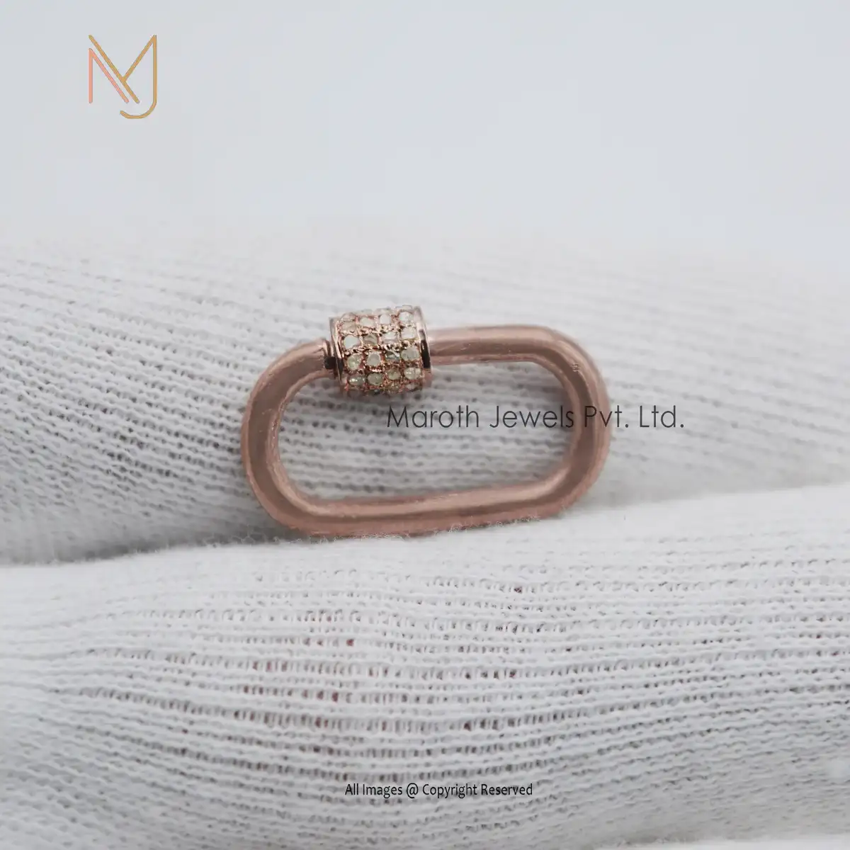 private Label 14K Solid Rose Gold Pave Diamond Carabiner Baby Findings Lock