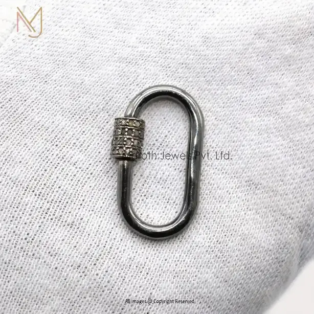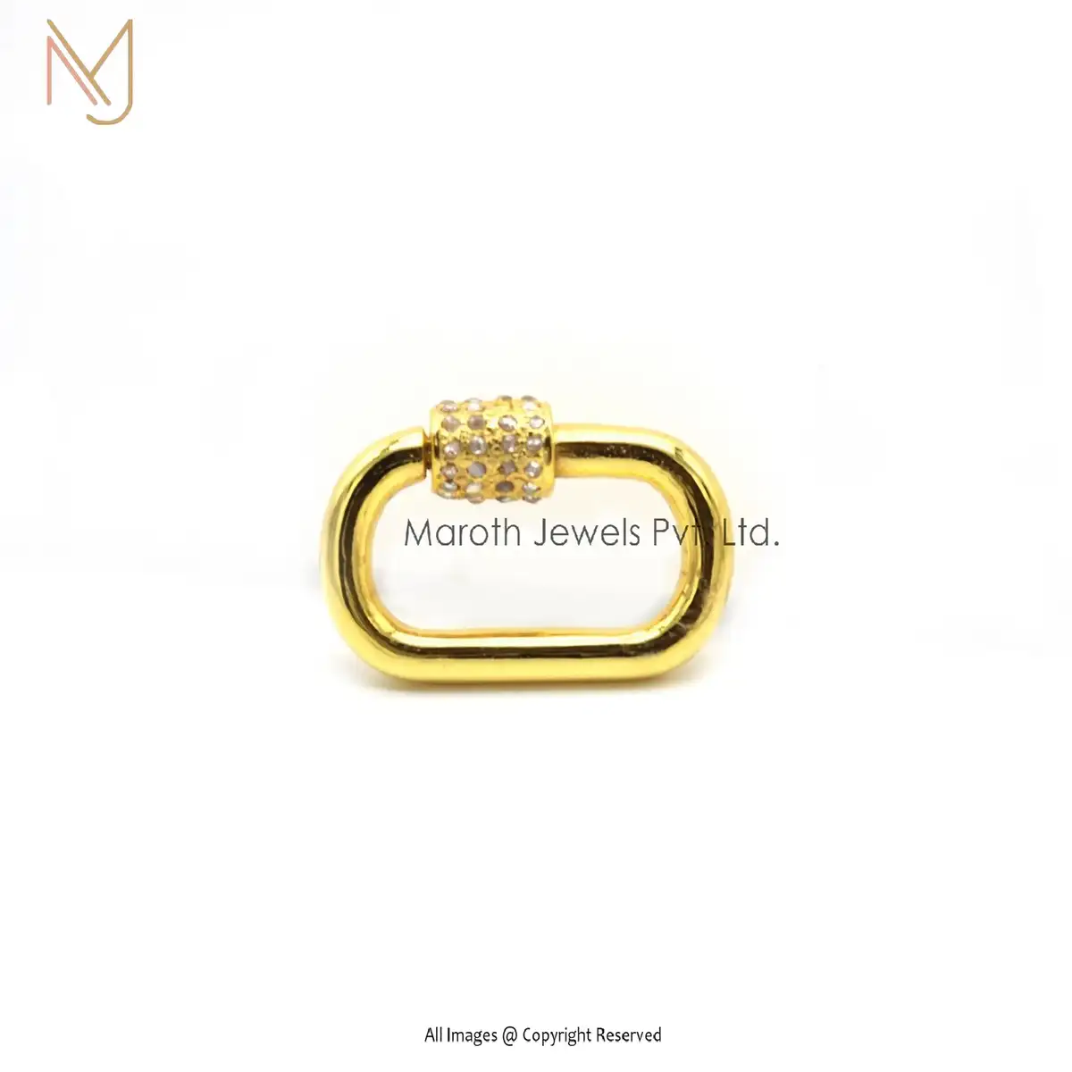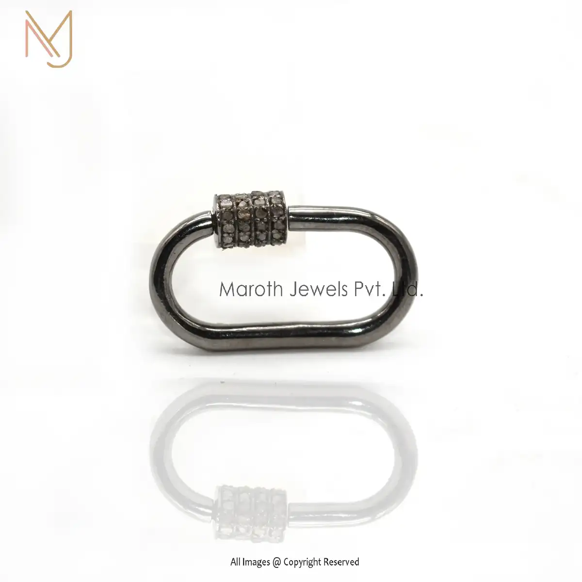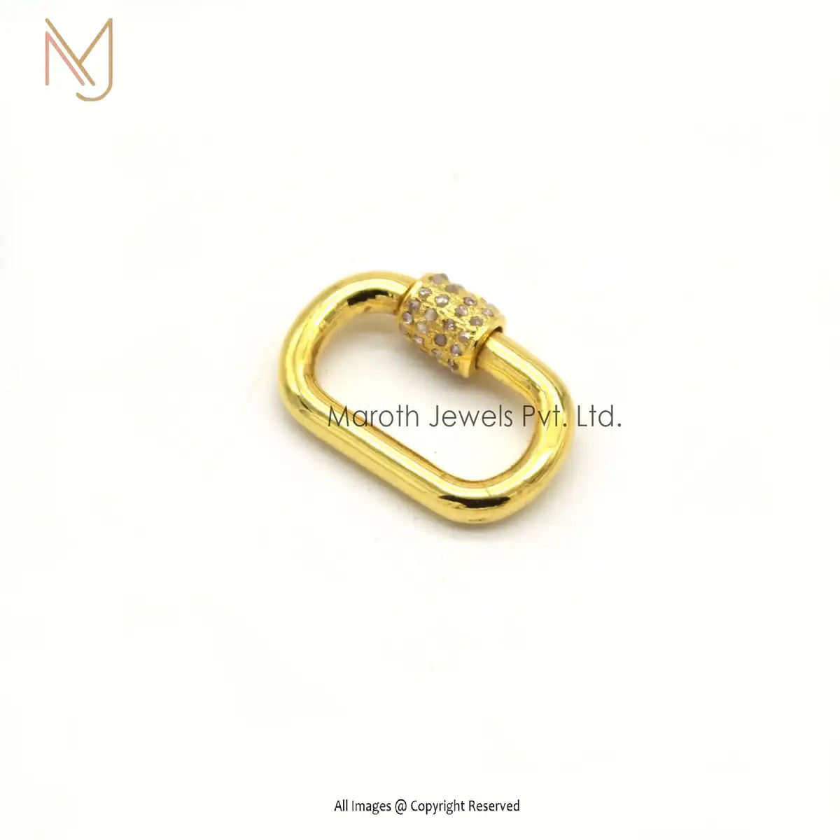 private Label 14K Solid Rose Gold Pave Diamond Carabiner Baby Findings Lock