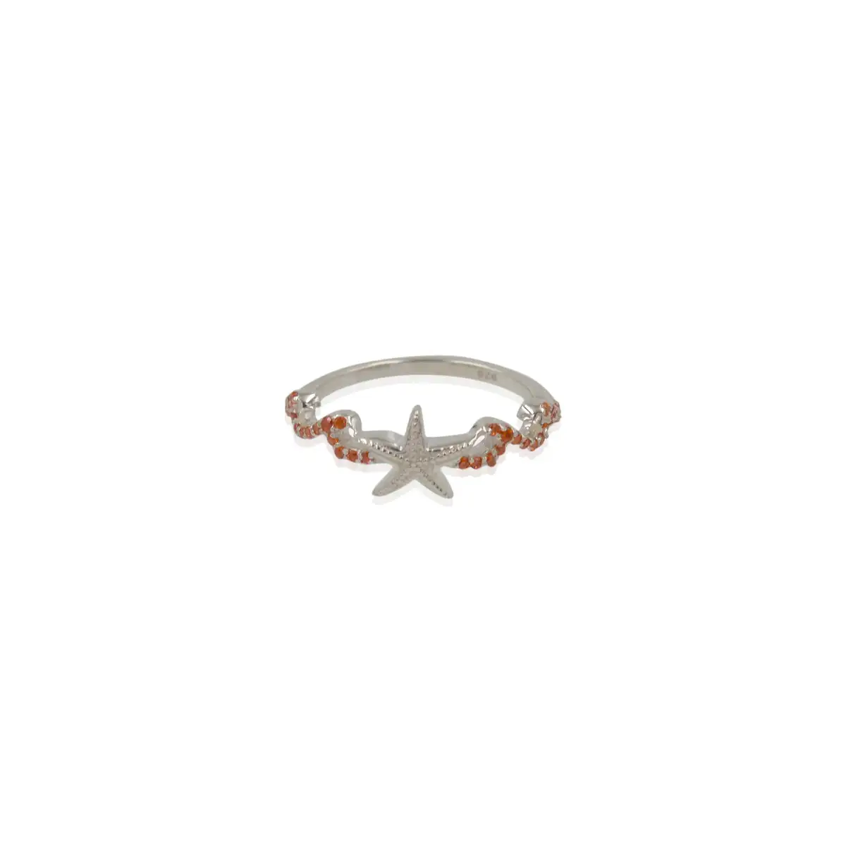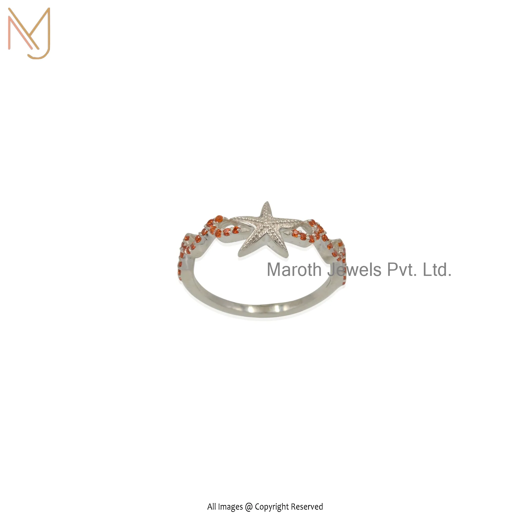 Private Label 14K White Gold CZ Orange Star Fish Ring