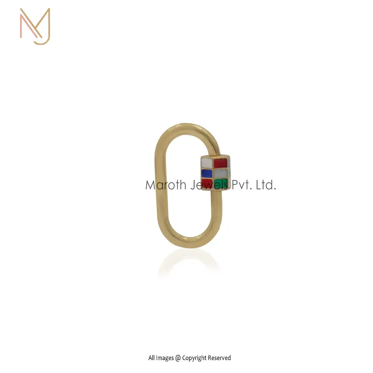 Private Label 14k Yellow Gold Color Enamel Carabiner Lock