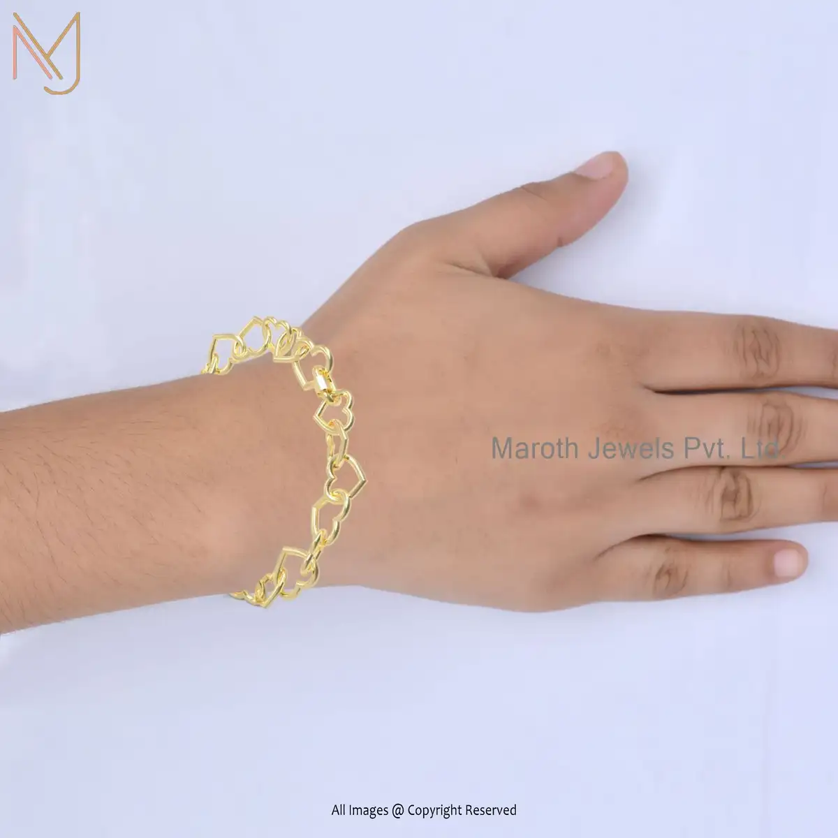 Private Label 14K Yellow Gold Heart And Carabiner Lock Bracelet Jewelry