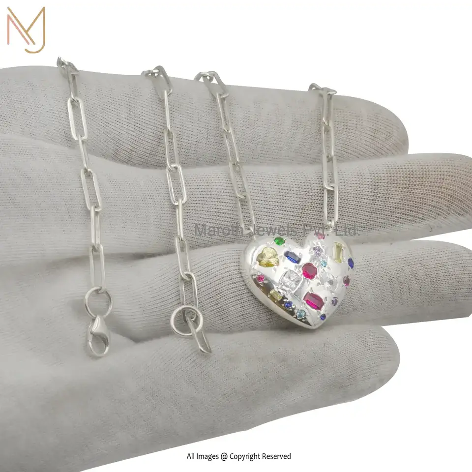 Private Label 14k Yellow Gold Multi Baguettes Heart Necklace