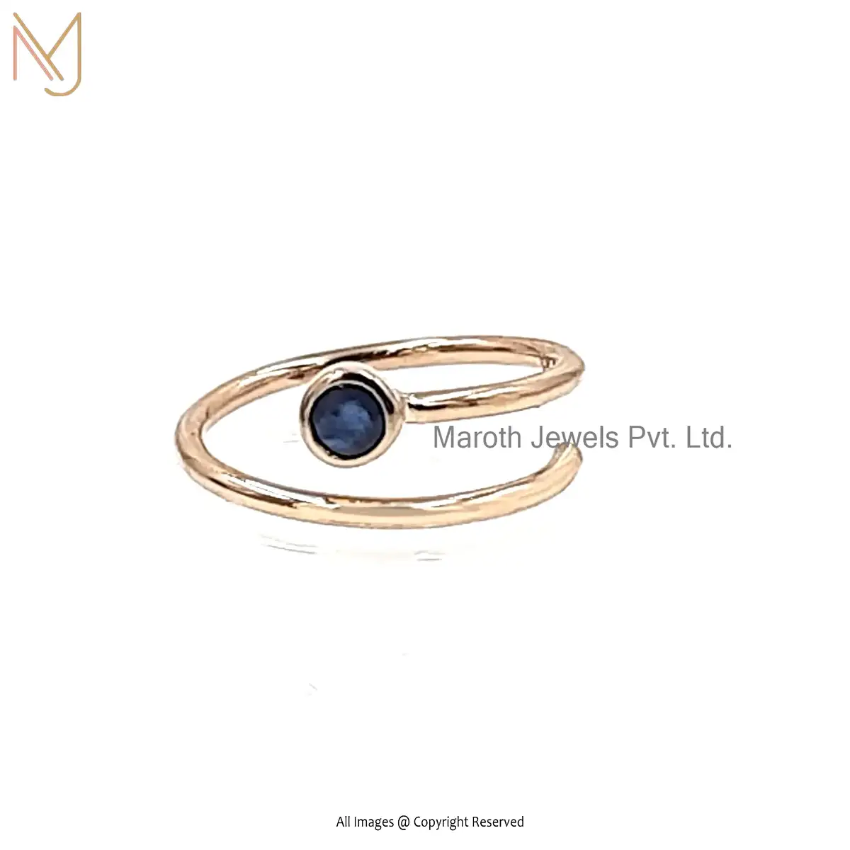 Private Label 14k Yellow Gold Plated Blue Sapphire Band Ring