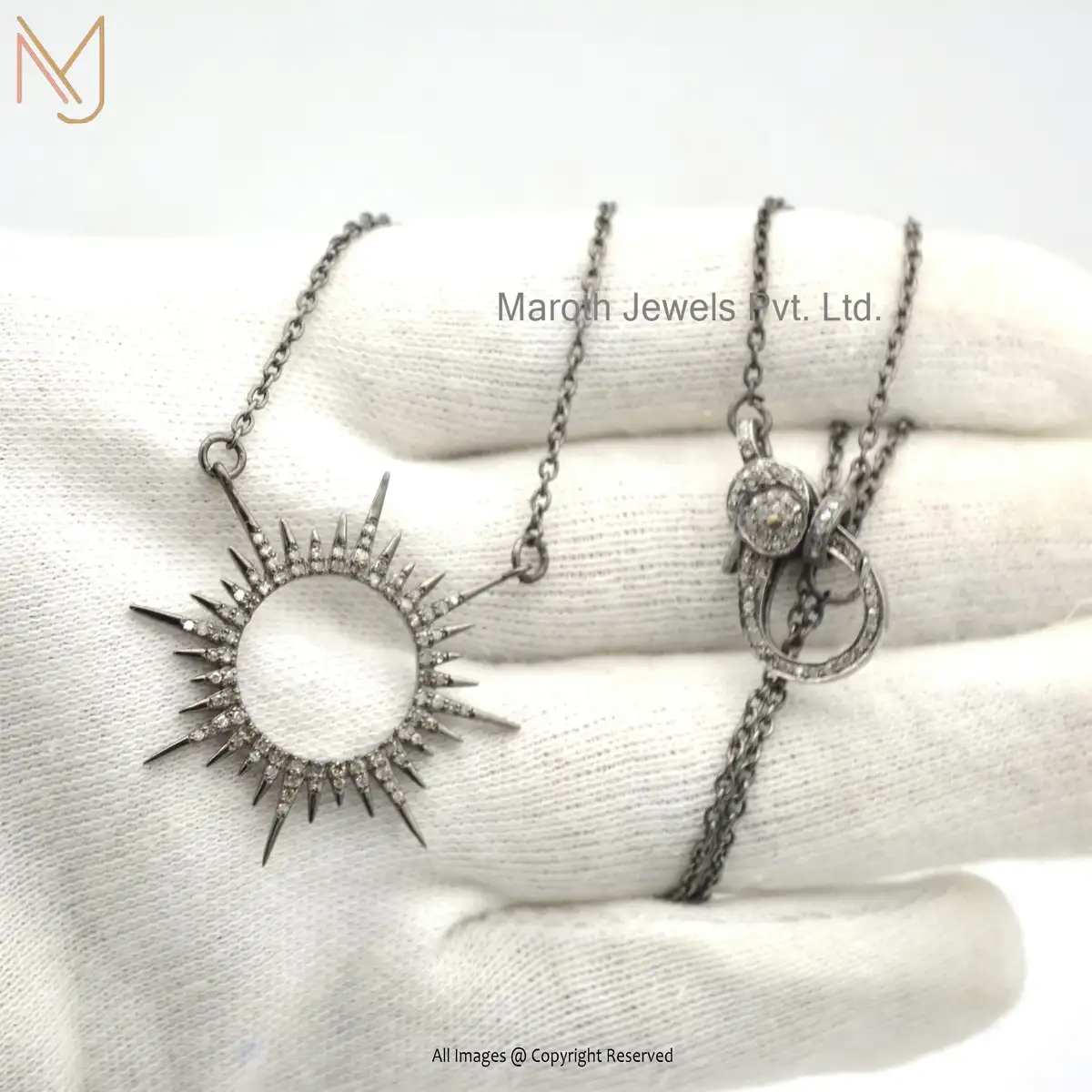 Private Label 925 Silver Black Rhodium Diamond Starburst Pendant Snap Lock Chain Necklace
