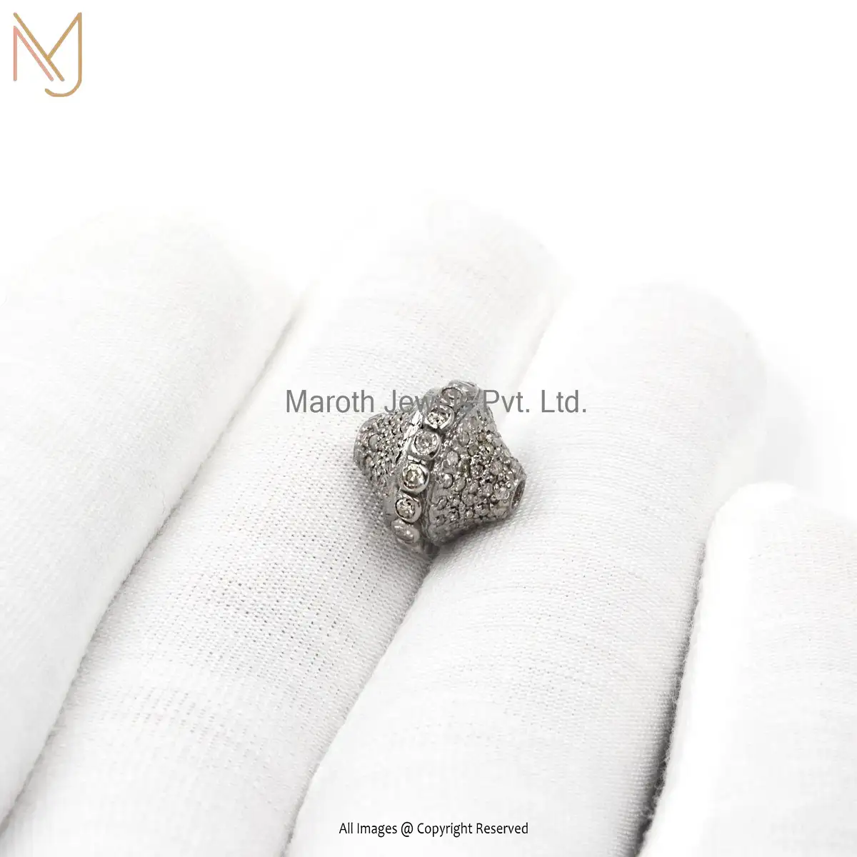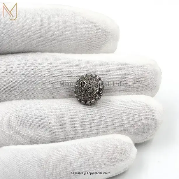 Private Label 925 Silver Gray Rhodium Plated Pave Diamond Bead Finding