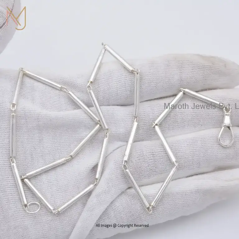 Private Label 925 Silver Natural Silver Link Bar Chain Necklace Jewelry