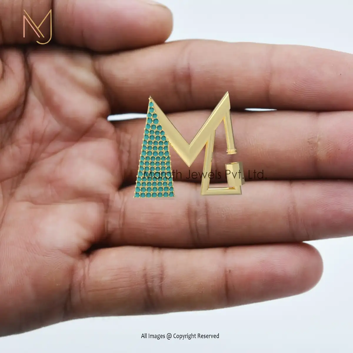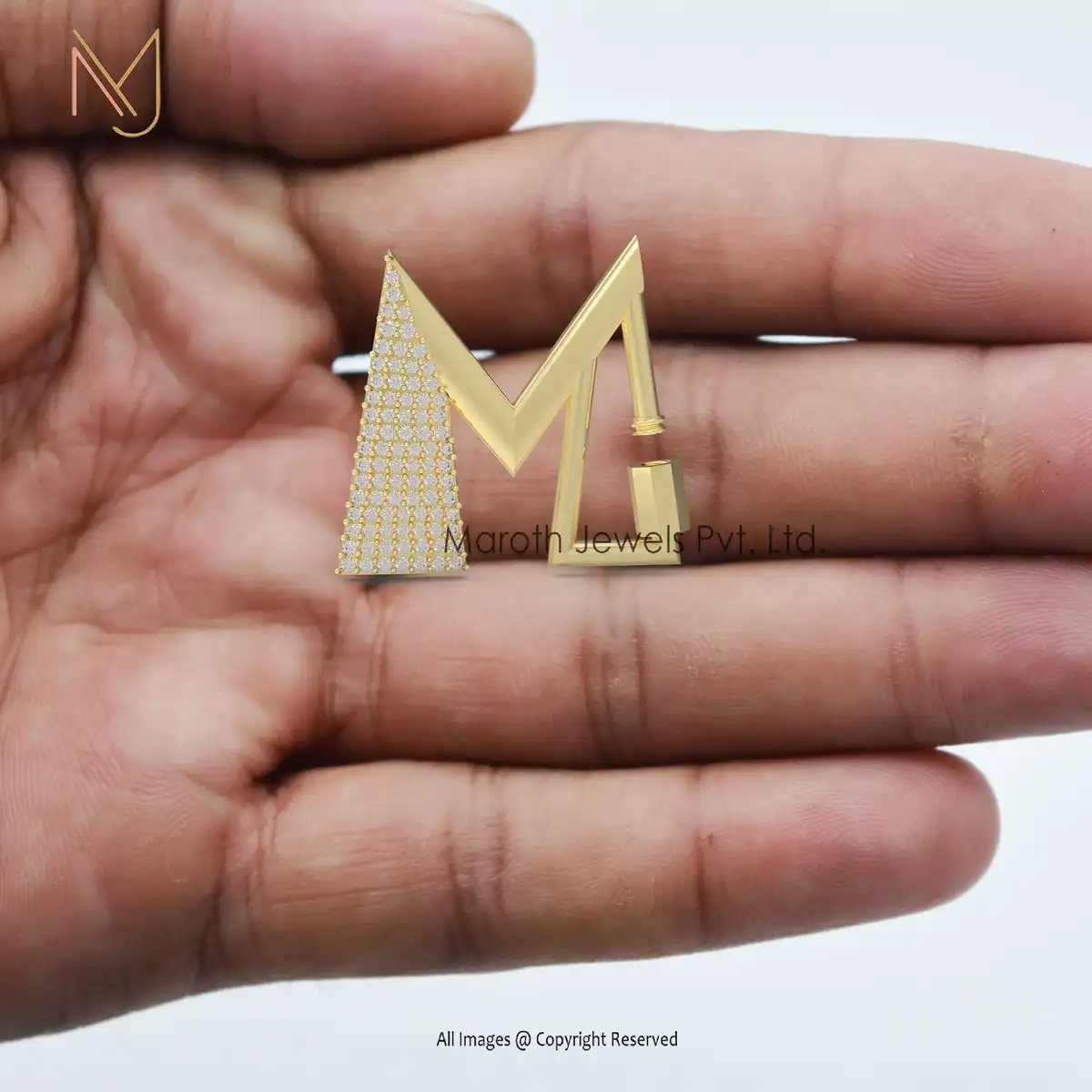 Private Label 925 Silver Pave Diamond M Letter Carabiner Lock Finding Jewelry